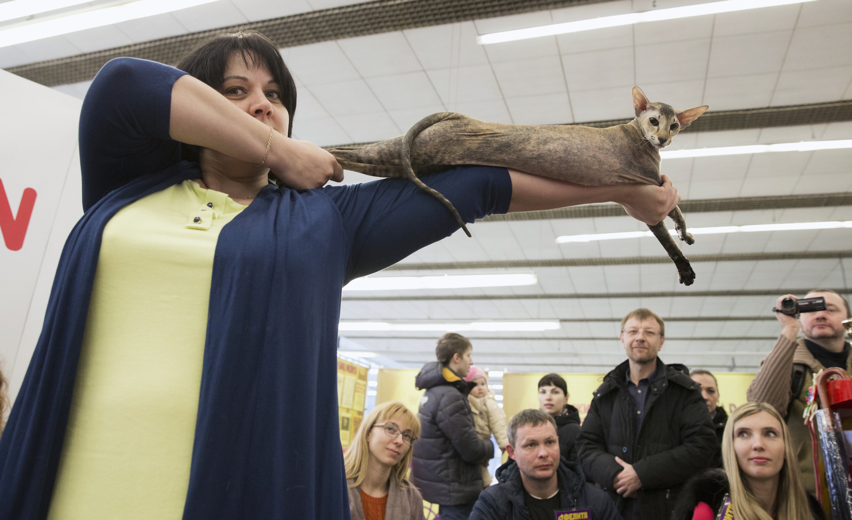 An expert holds a cat during "The best cat of Belarus" international cat exhibition in Minsk January 17, 2015. REUTERS/Vasily Fedosenko (BELARUS - Tags: SOCIETY TPX IMAGES OF THE DAY ANIMALS) *** Local Caption *** Seorang ahli memperlihatkan seekor kucing saat pameran kucing internasional "The Best Cat of Belarus" di Minsk, Belarusia, Sabtu (17/1). ANTARA FOTO/REUTERS/Vasily Fedosenko/ox/15.