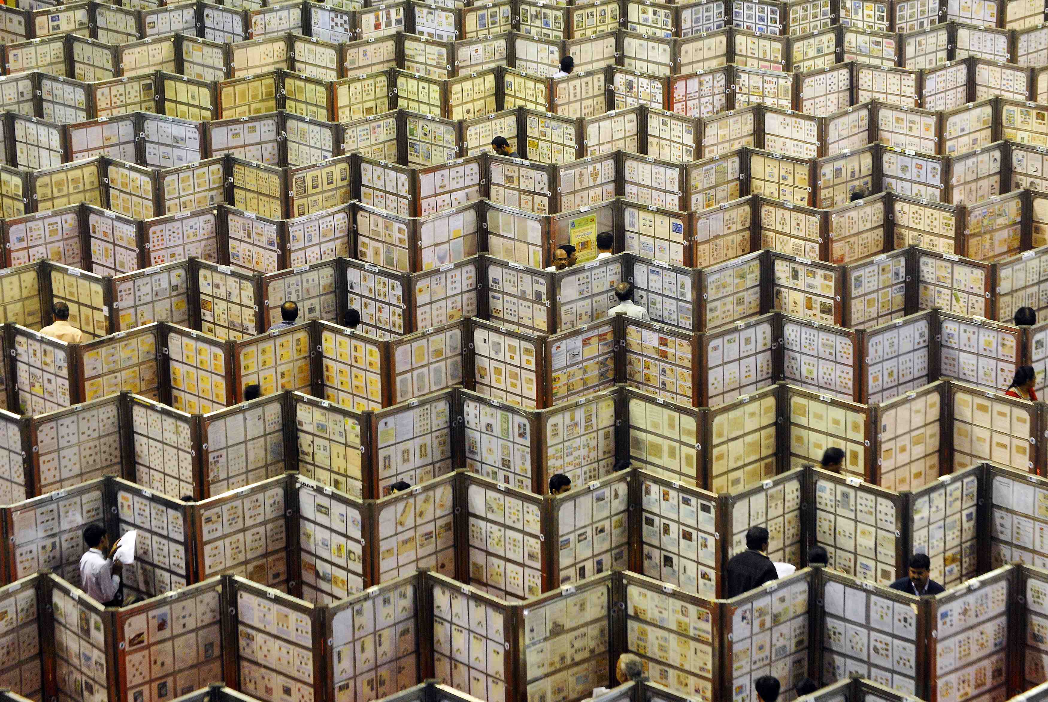Visitors look at exhibits of stamps and postal related material at a philatelic exhibition in the southern Indian city of Bengaluru, January 17, 2015. REUTERS/Abhishek N. Chinnappa (INDIA - Tags: SOCIETY TPX IMAGES OF THE DAY) *** Local Caption *** Pengunjung memperhatikan perangko dan benda pos lainnya di pameran filateli di Bengaluru, India, Sabtu (17/1). ANTARA FOTO/REUTERS/Abhishek N. Chinnappa/ox/15.