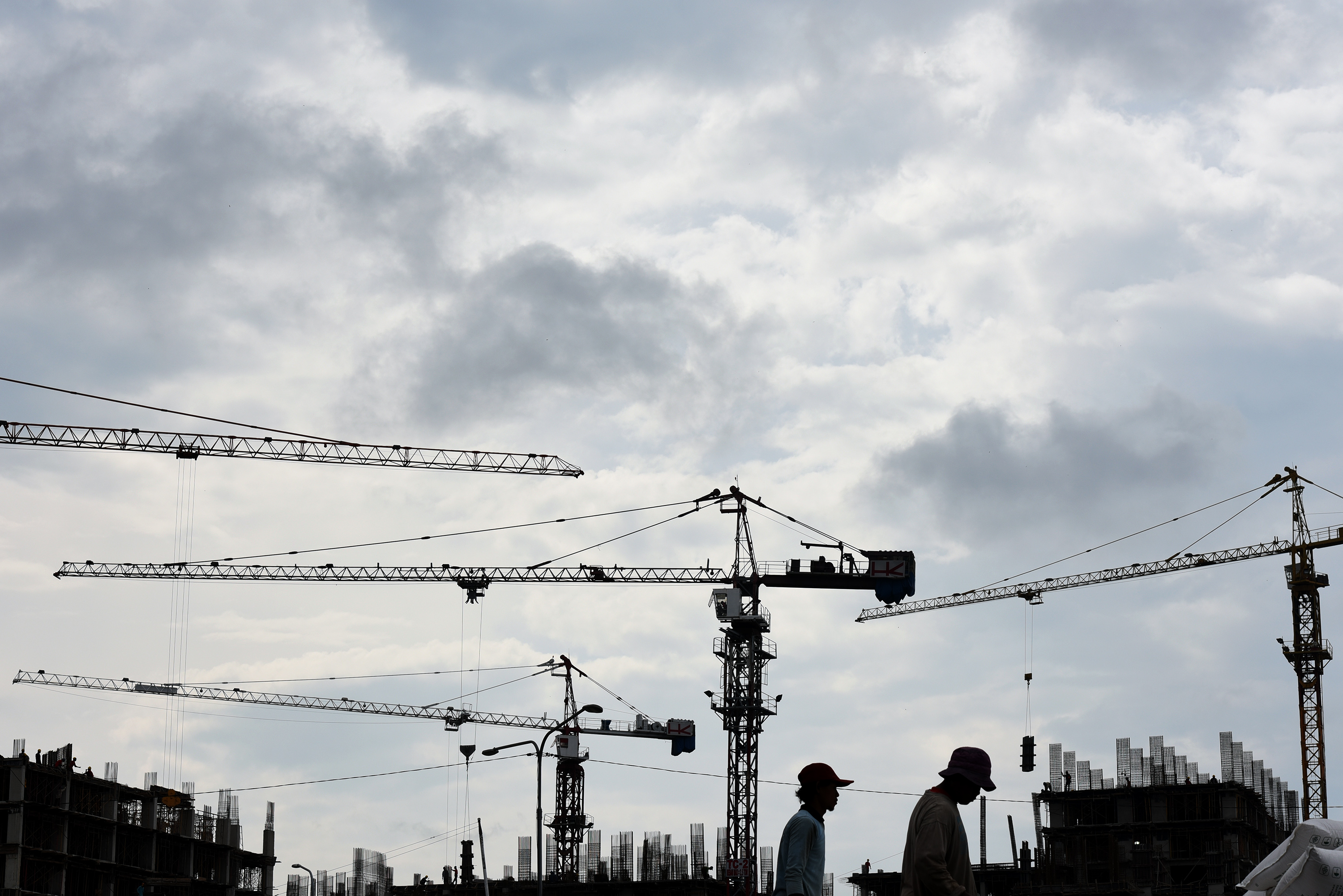 (Berita Daerah – Jakarta) Siluet pekerja menyelesaikan pembangunan apartemen di tepi laut Jakarta, Senin (23/2). Menurut lembaga konsultan properti Cushman & Wakefield mengatakan pasokan apartemen terbangun di Jakarta pada Desember 2014 tercatat sebanyak 138.574 unit, naik 4,6 persen per kuartal dan 16,0 persen per tahun.