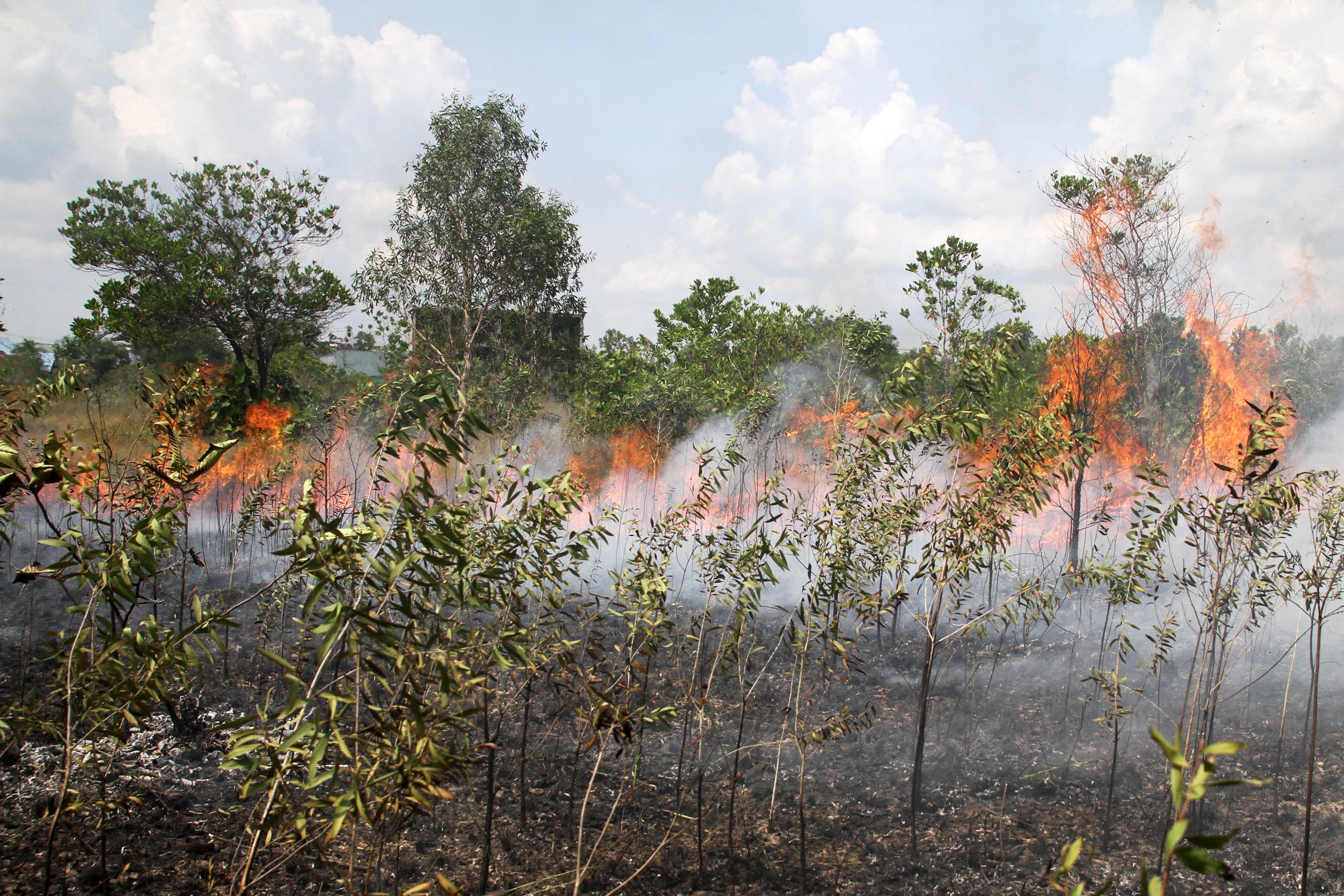 (Berita Daerah – Pekanbaru) Api membakar lahan milik warga di Pekanbaru, Riau, Senin (2/3). Panasnya cuaca dan kencangnya tiupan angin membuat api sulit untuk dipadamkan.
