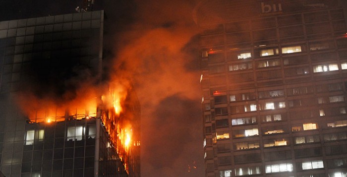 Hingga Selasa pagi, 10 Maret 2015, api masih berkobar di lantai 19 dan 20. Padahal, Senin malam pukul 23.00 WIB, pemadam kebakaran sempat berhasil memadamkan api. Api baru benar-benar jinak sekitar pukul 09.40 tadi. Pemadam kebakaran mengerahkan alat skylift untuk menjinakkan api. Belum diketahui pasti penyebab kebakaran ini. Namun, kondisi makin parah lantaran sistem dan alat pencegah kebakaran tidak berfungsi dengan baik.