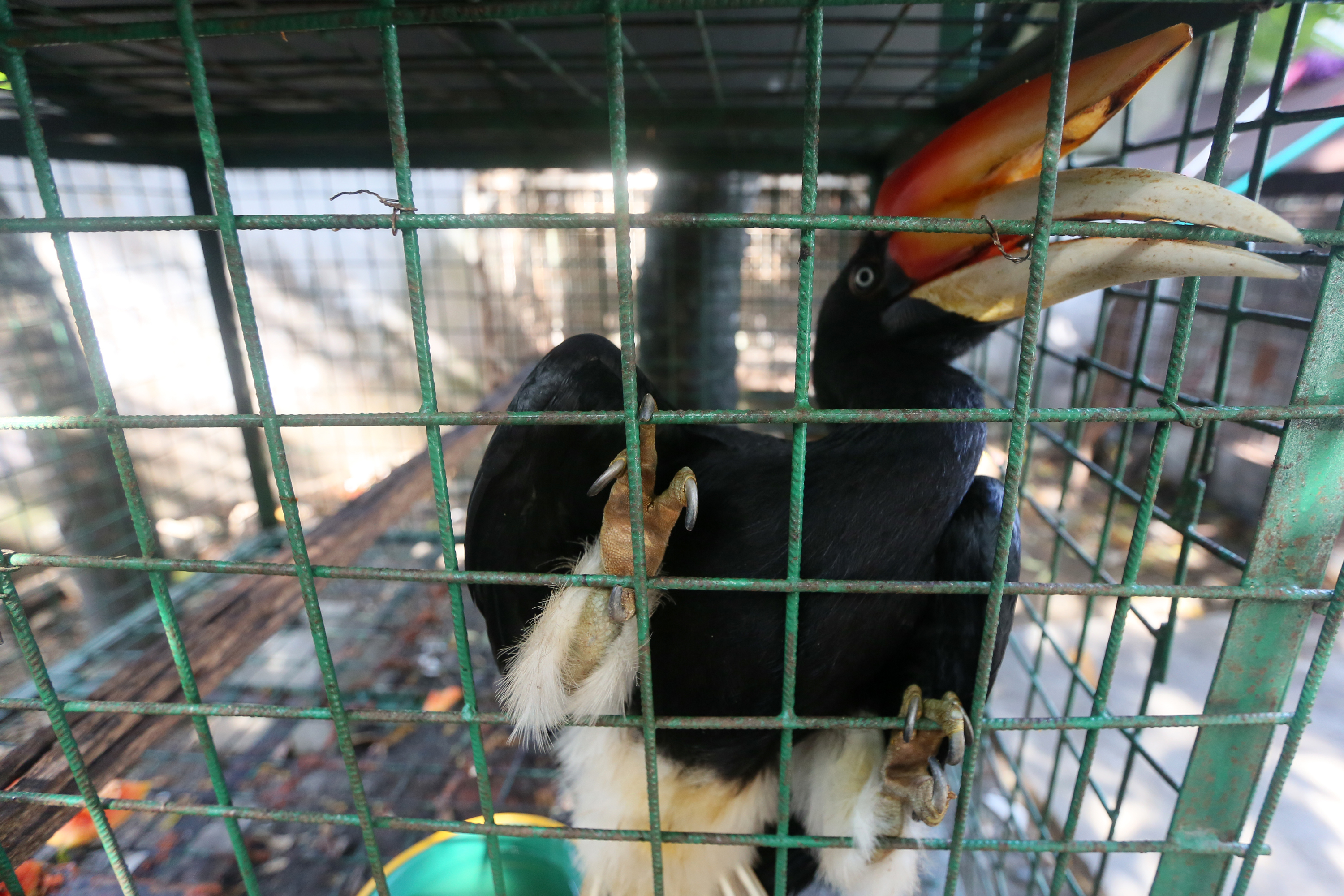 (Berita Daerah – Banda Aceh) Burung Rangkong (Rhyteceros plicatus) hasil sitaan petugas konservasi milik warga yang diamankan sebelum dilepasliarkan di Kantor Balai Konservasi Sumber Daya Alam (BKSDA) Aceh, Banda Aceh, Kamis (12/3). Populasi rangkong Indonesia terancam musnah akibat berkurangnya sumber makanan hingga 50 persen dikawasan hutan lebih dan maraknya perburuan.
