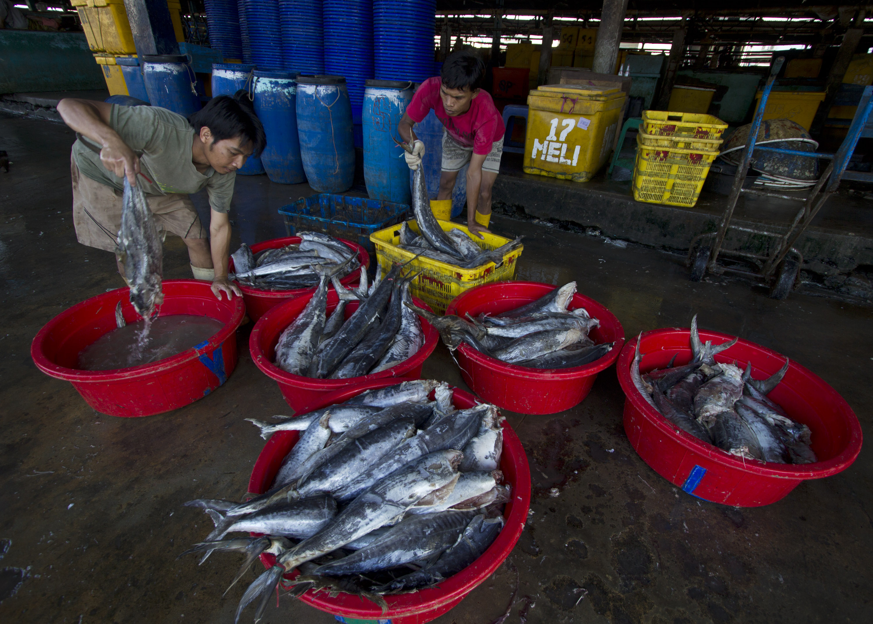 (Berita Daerah – Jakarta) Pekerja merapihkan ikan laut hasil tangkapan mereka di Jakarta, Selasa (17/3). Menurut nelayan hasil tangkapan ikan laut menurun 20 persen akibat buruknya cuaca di sekitar Jakarta.