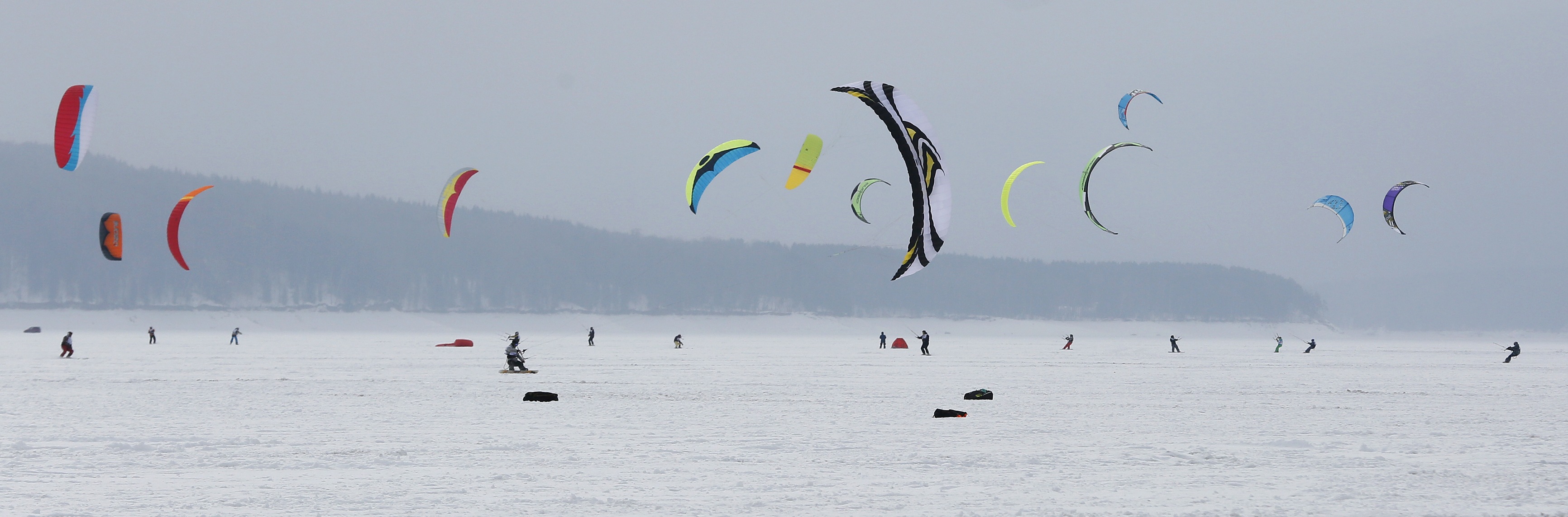 Kite boarders and kite skiers compete during an annual amateur regional snow kiting championship on the frozen Yenisei River in the Taiga district outside Russia's Siberian city of Krasnoyarsk March 15, 2015. About 30 participants from Siberia took part in two-day long competition, according to organizers. Picture taken March 15, 2015. REUTERS/Ilya Naymushin (RUSSIA - Tags: ENVIRONMENT SOCIETY SPORT TPX IMAGES OF THE DAY) *** Local Caption *** Peserta selancar layang dan ski layang beraksi saat kejuaraan layang salju regional tahunan untuk amatir di atas Sungai Yenisei yang beku di distrik Taiga, di luar kota Krasnoyarsk, Siberia, Rusia, Minggu (15/3). Sekitar 30 peserta dari Siberia mengikuti kompetisi yang berlangsung selama dua hari ini, menurut keterangan pihak penyelenggara. ANTARA FOTO/REUTERS/Ilya Naymushin/ox/15.