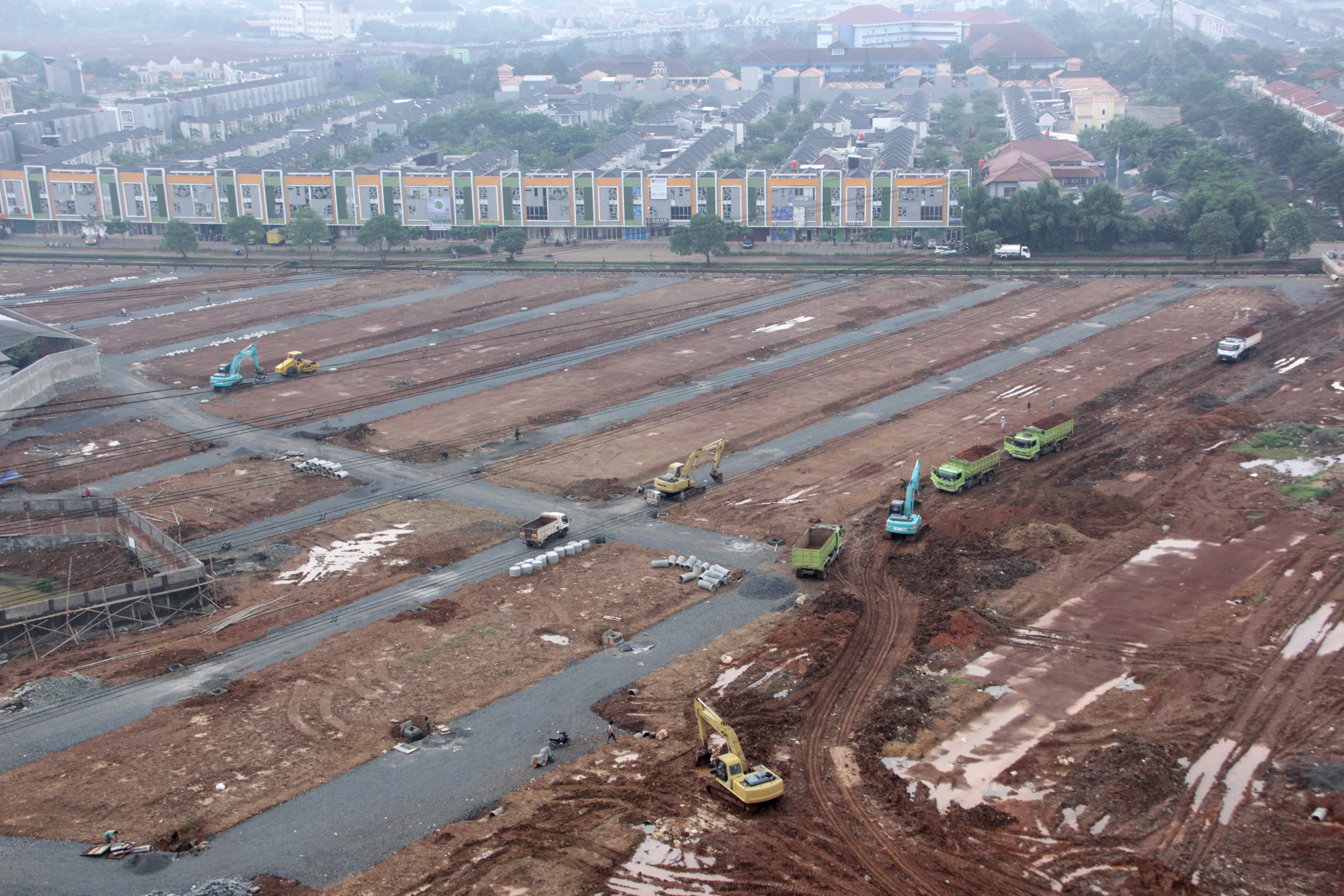 (Berita Daerah – Tangerang) Sejumlah alat berat melakukan perataan lahan hunian di kawasan Serpong, Tanggerang, Selasa (24/3). Badan Kebijakan Fiskal Kementerian Keuangan akan melakukan penerapan Pajak Penghasilan/PPh barang sangat mewah untuk sektor properti, seperti rumah, apartemen dan kondominium.