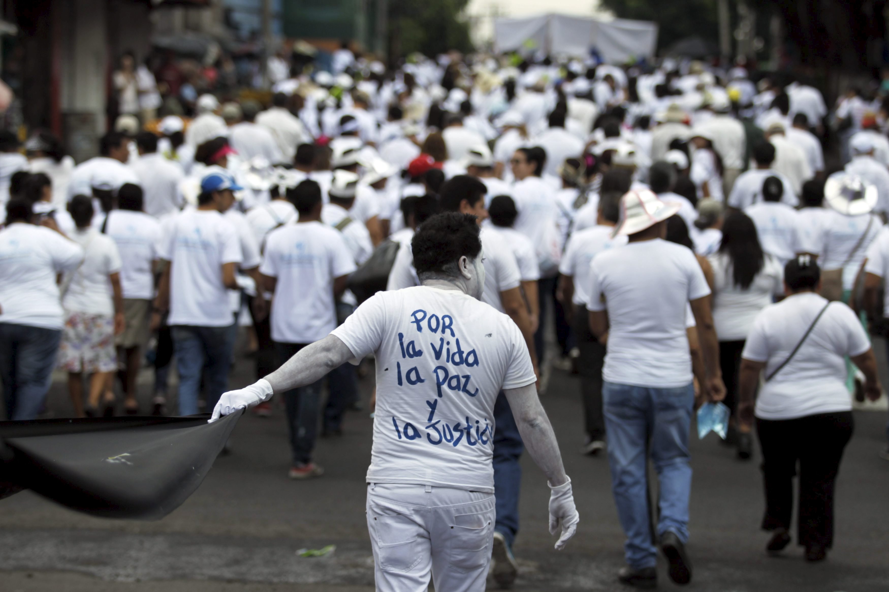Pelajar mengikuti Pawai untuk Perdamaian, Hidup, dan Keadilan di pusat kota San Salvador, El Salvador, Kamis (26/3). Ribuan warga mengikuti pawai yang digelar oleh pemerintah El Salvador tersebut, sebagai jawaban atas kekerasan yang terjadi di El Salvador, kata media setempat. Kaus yang dipakai pelajar di tengah bertuliskan: “Untuk Hidup, Perdamaian, dan Keadilan”.