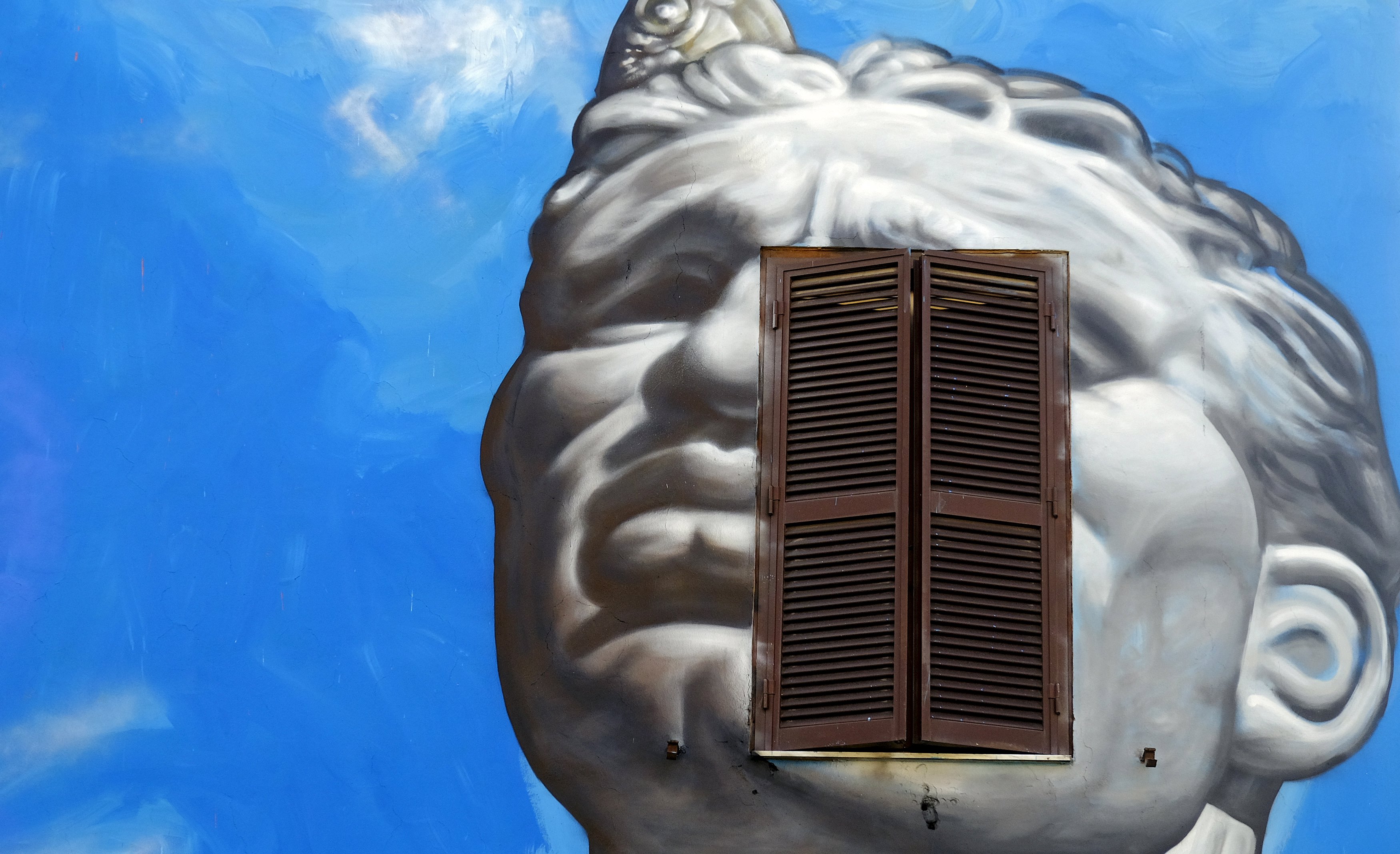 An half closed window is seen on a house painted with graffiti in a Rome neighbourhood, March 30, 2015. REUTERS/Stefano Rellandini TPX IMAGES OF THE DAY *** Local Caption *** Jendela yang setengah terbuka terlihat di sebuah rumah yang dindingnya dipenuhi mural di sebuah daerah perumahan di Roma, Italia, Senin (30/3). ANTARA FOTO/REUTERS/Stefano Rellandini/ox/15.