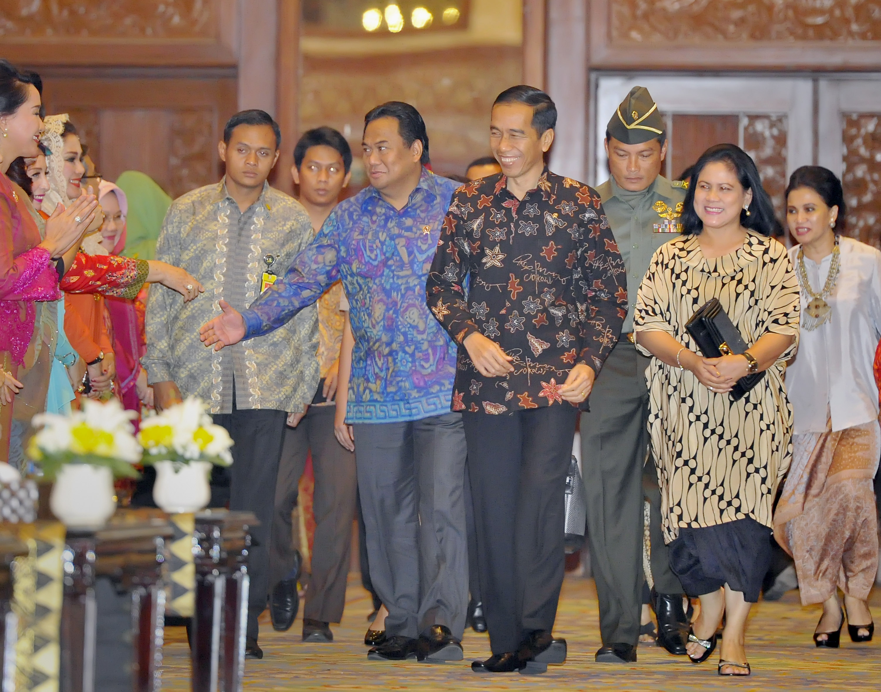 (Berita Daerah – Jakarta) Presiden Joko Widodo (ketiga kanan) didampingi Ibu Negara Iriana Joko Widodo (kedua kanan) serta Menteri Perdagangan Rachmat Gobel (kedua kiri) secara simbolis membuka Pameran Kerajinan Khas Indonesia – Inacraft 2015 di Balai Sidang Jakarta, Rabu (8/4). International Handicraft Trade Fair (Inacraft) 2015 ke-17 tersebut, diikuti 1.600 perusahaan dari seluruh provinsi di Indonesia, diselenggarakan oleh Asosiasi Eksportir dan Produsen Handicraft Indonesia (Asephi) berlangsung hingga 12 April mendatang.