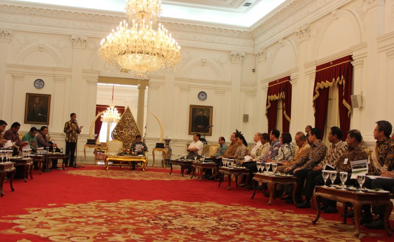 (Vibizmedia – Nasional) Presiden Jokowi kembali mengundang para pemimpin dan pelaku usaha Expor Impor dalam rapat terbatas yang biasanya diadakan di kantor presiden kali ini diadakan di Istana Merdeka. Presiden yang di dampingi oleh sejumlah menteri diantaranya Menko Perekonomian Sofyan Djalil, Menteri Kelautan dan Perikanan Susi Pudjiastuti, Menteri Perindustrian Saleh Husein, Menteri Perdagangan Rachmat Gobel, Menteri Keuangan Bambang Brodjonegoro, Menteri BUMN Rini Soemarno dan Kepala Staf kepresidenan Luhut Panjaitan, Sekretaris Kabinet Andi Widjajanto.