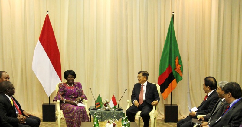 (Vibizmedia – Nasional) Hari ini Selasa (21/4) Wakil Presiden RI Jusuf Kalla didampingi Menteri Koordinator Sofyan Djalil dan Wakil Menteri Luar Negeri Abdurrahman M. Fachir mengadakan pertemuan bilateral dengan wakil presiden Zambia Inonge Wina bertempat di Kakatua Room Jakarta Convention Center.