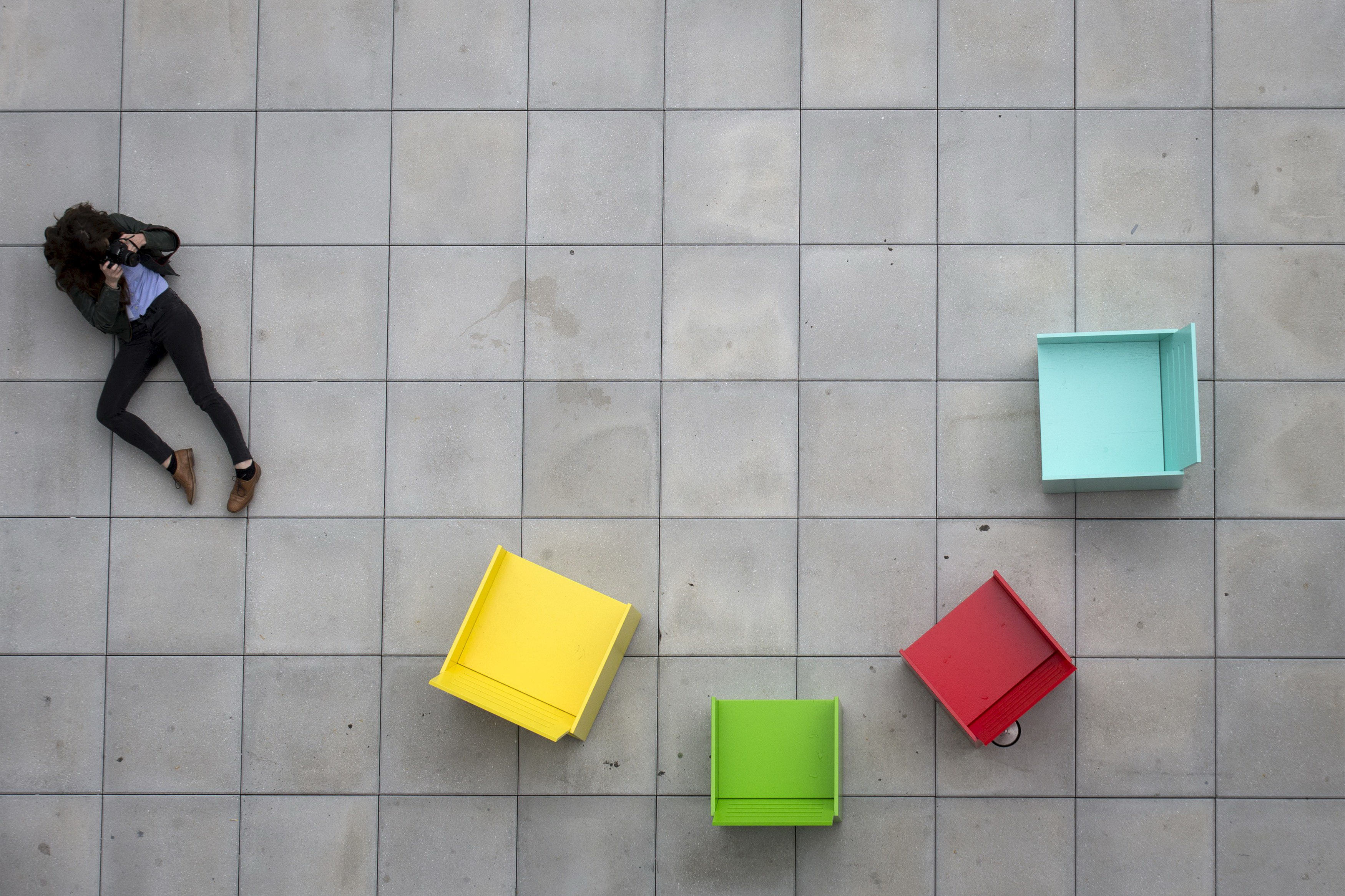 An attendee photographs chairs on a patio during the opening preview of The Whitney Museum of American Art in New York April 23, 2015. American art gets a new home as the Whitney Museum of American Art opens the doors to its new location in New York. REUTERS/Brendan McDermid TPX IMAGES OF THE DAY