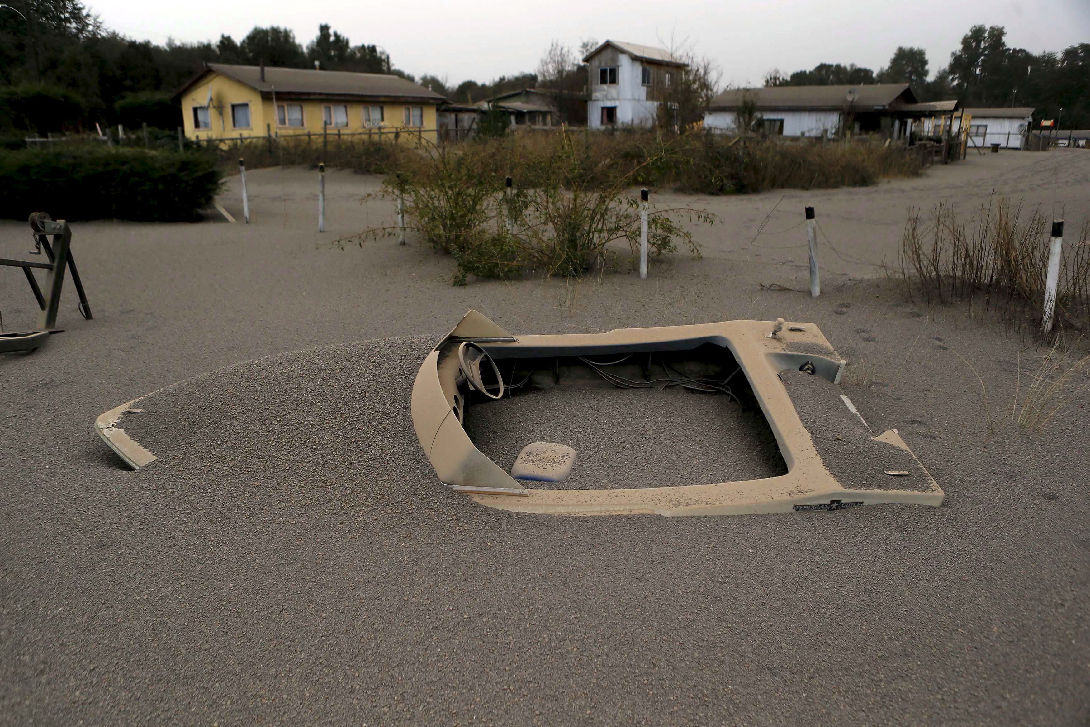 A boat is seen in a house backyard at Ensenada town which is covered with ash from Calbuco volcano near Puerto Varas city, April 23, 2015. An ash cloud from volcano Calbuco in southern Chile that erupted unexpectedly on Wednesday was blowing into Chile and Argentina on Thursday, forcing the cancellation of flights from nearby towns in both countries. REUTERS/Ivan Alvarado TPX IMAGES OF THE DAY