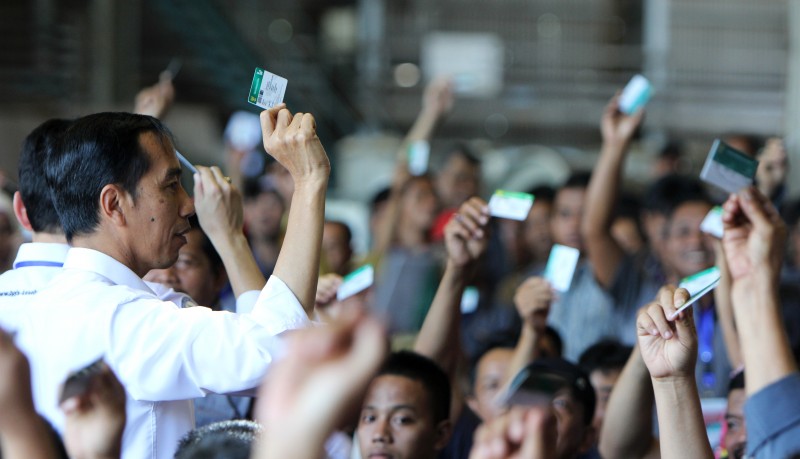 (Vibizmedia – Nasional) Sesuai dengan janji Presiden Jokowi yang disampaikan pada saat silaturahmi Pers Nasional, pagi ini Selasa (28/4) Presiden Jokowi melakukan kunjungan kerja ke PT. Dok & Perkapalan Kodja Bahari (DKB) di Cilincing, Jakarta Utara yang di dampingi oleh Menteri Sosial Khofifah Indar Parawansa dan Menteri Tenaga Kerja dan Transmigrasi Hanif Dhakiri untuk menyerahkan Kartu Indonesia Sehat (KIS) kepada Pekerja atau buruh di PT. DKB.