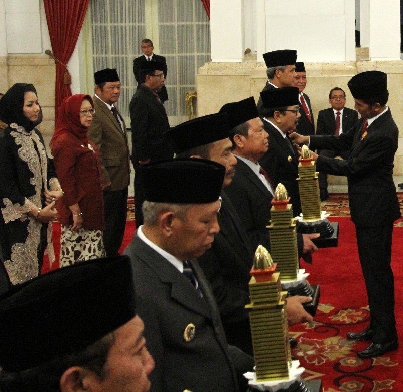 Presiden yang didampingi oleh Menteri Dalam Negeri, Menteri Sekretariat Negara dan Menteri Hukum dan HAM, memberikan penghargaan berupa 2 jenis dalam bentuk tropi dan lencana kepada sejumlah kepala daerah yaitu penghargaan Samkaryanugraha Parasamya Purnakarya Nugraha (tropi) dan Satyalancana Karya Bhakti Praja Nugraha (lencana).