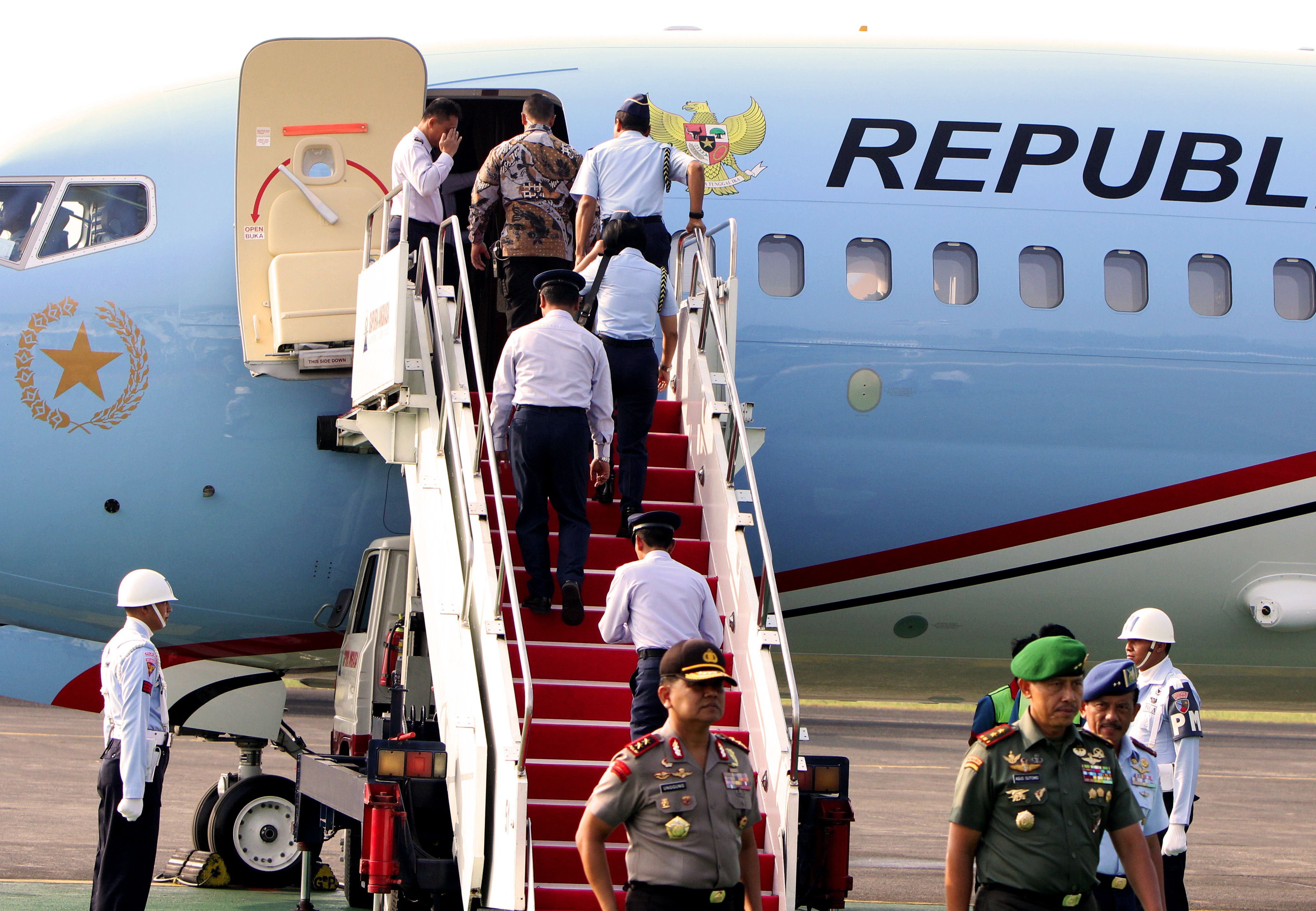Presiden Bersama Ibu Negara Iriana Jokowi Berangkat Kunjungan Kerja Ke Jawa Timur dan Sulawesi Selatan Mengunakan Pesawat RI 1 Di Halim Perdanakusuma, 21 Mei 2015