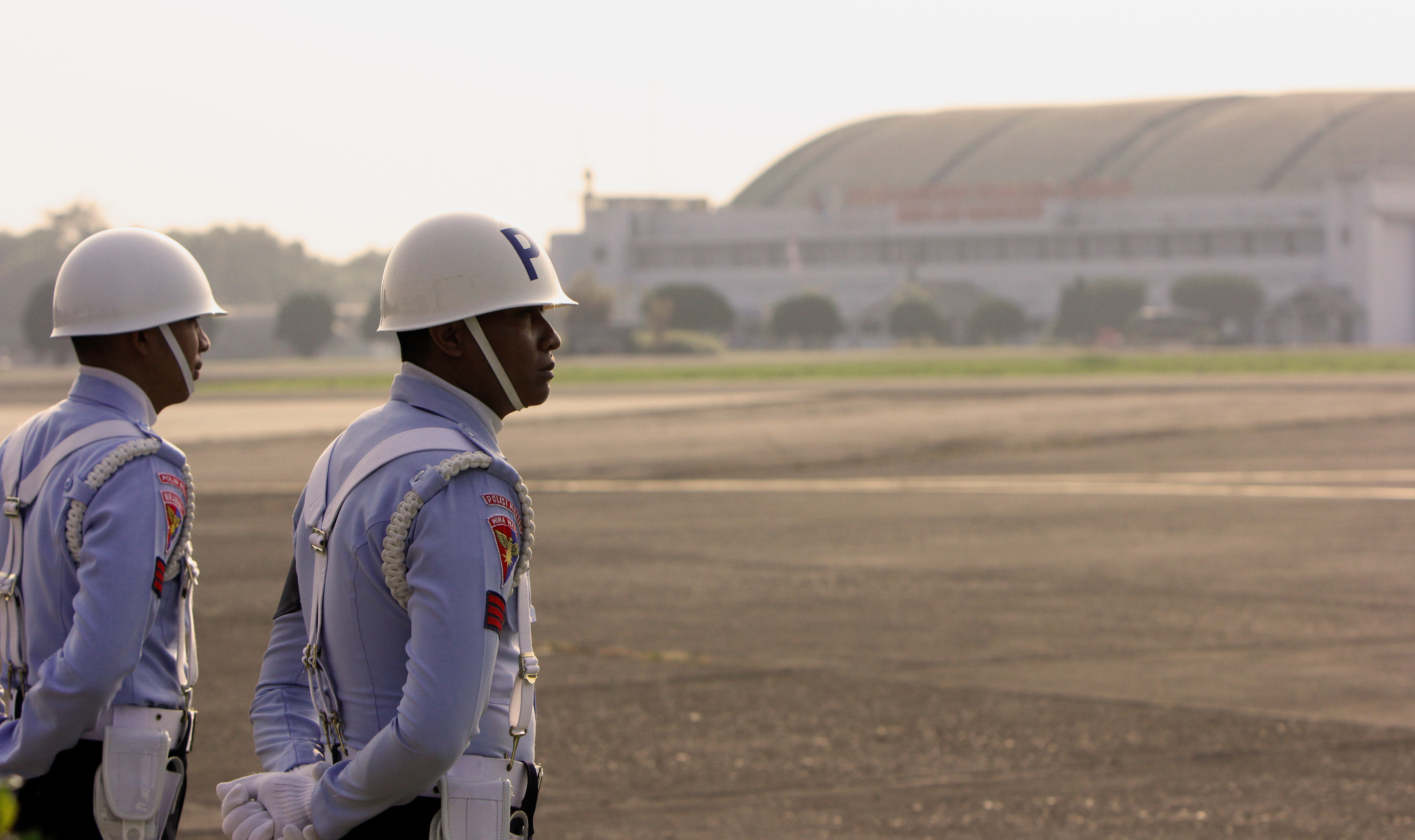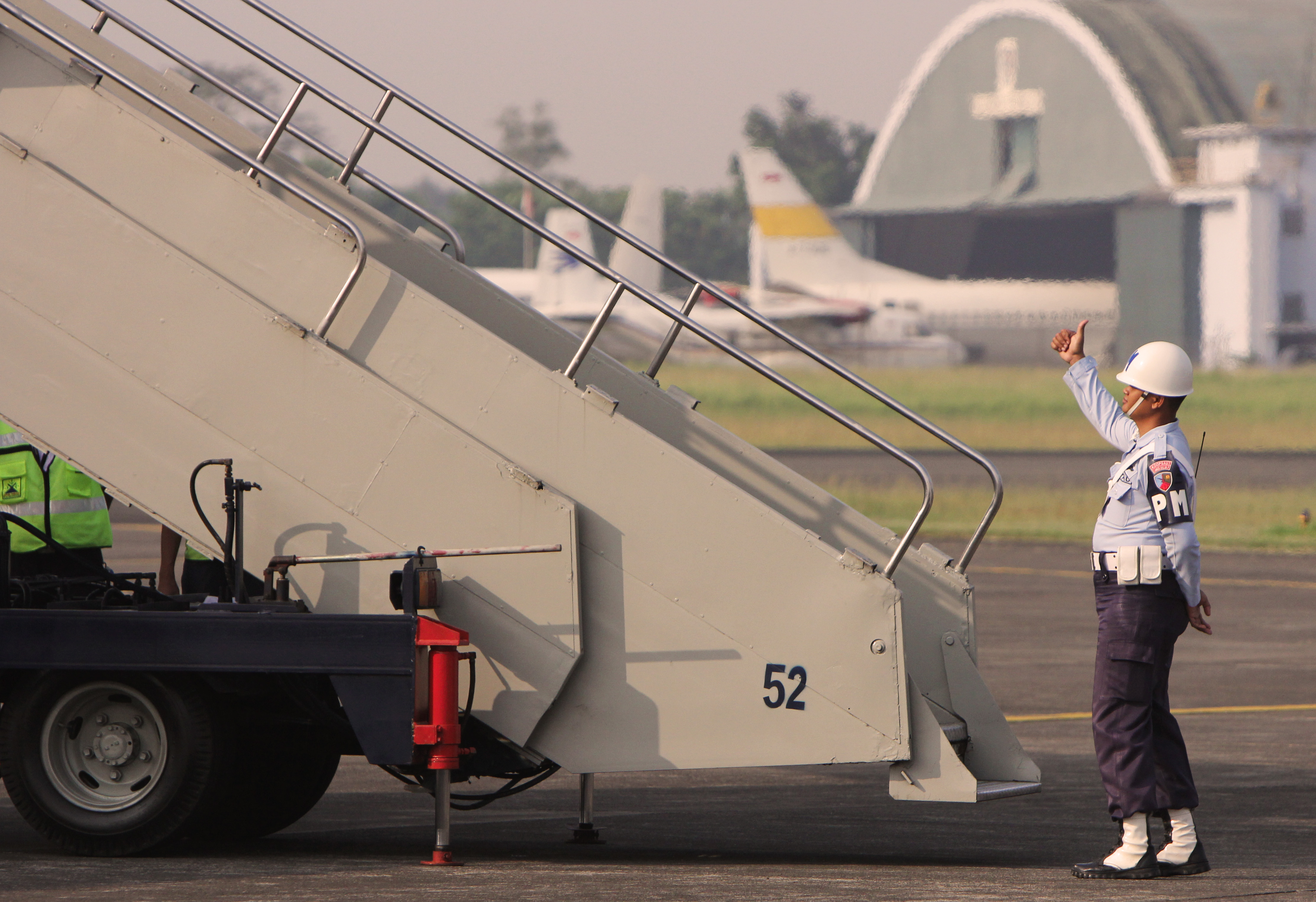 Petugas Pemberi Aba-Aba Pesawat Kepresidenan Dari Angkatan Udara Di Halim Perdanakusuma, 21 Mei 2015