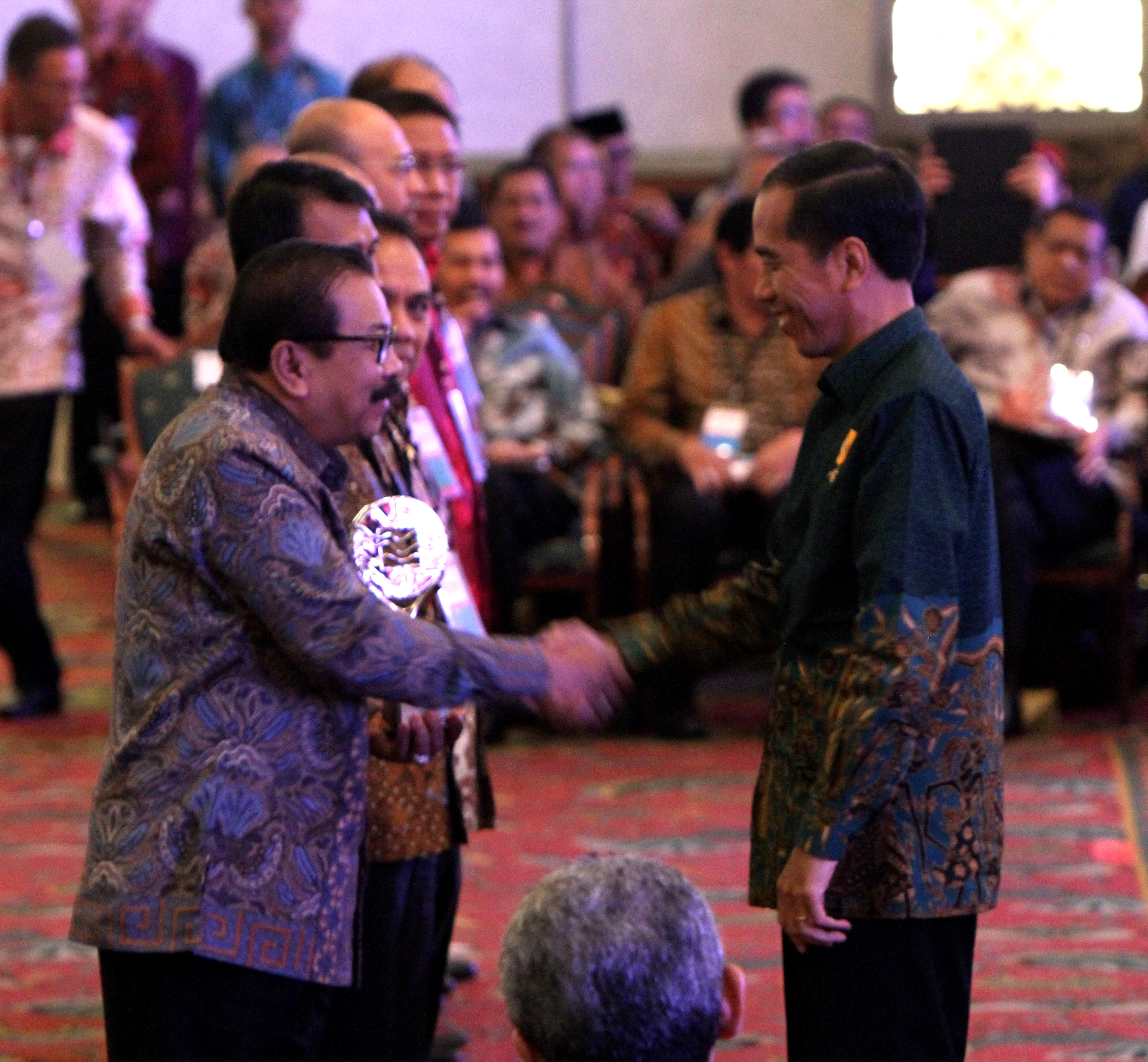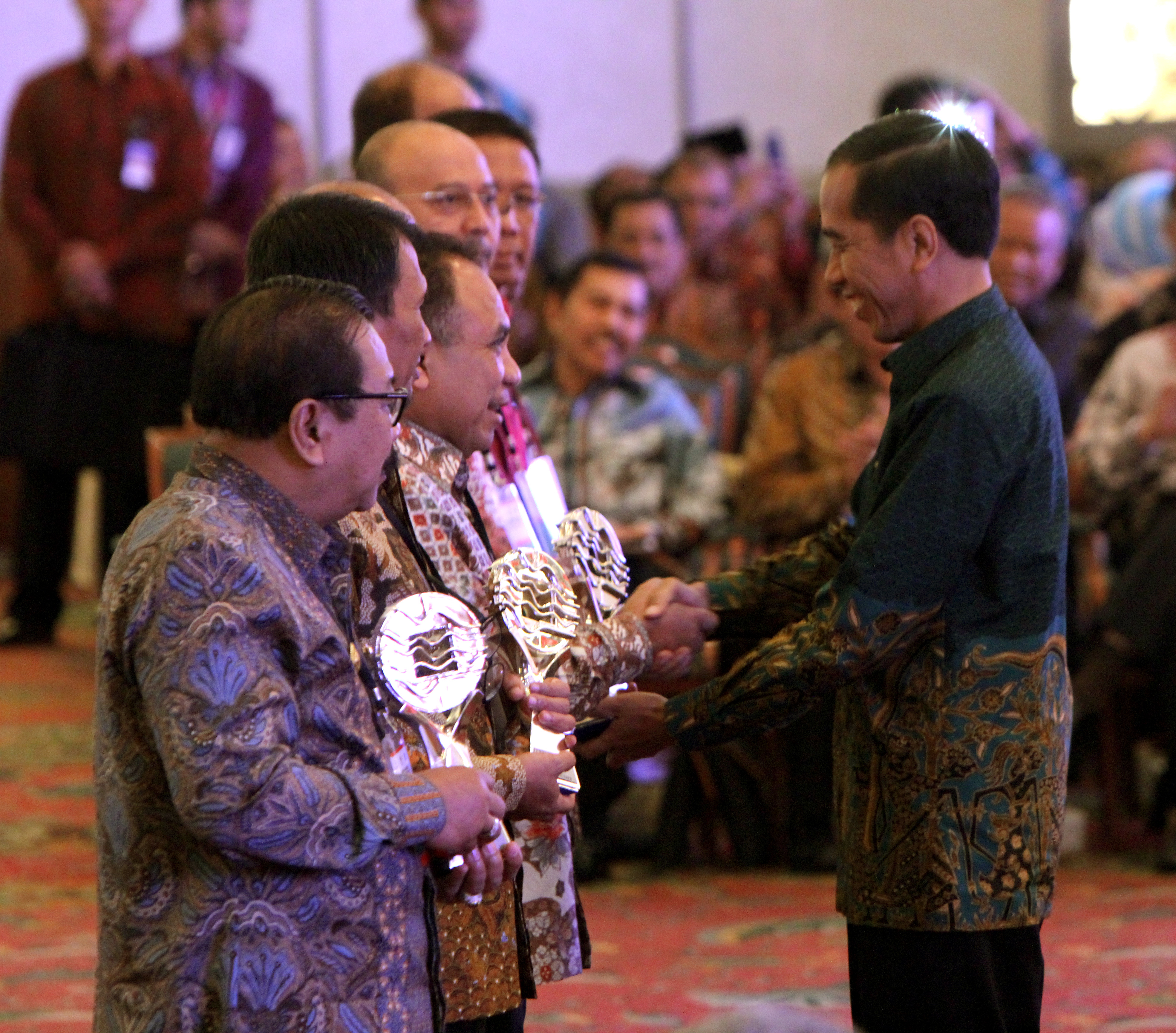 Presiden Jokowi Memberikan Piagam Pemenang Tim Pengendalian Inflasi Daerah Kabupaten Talakar Kepada Gubernur Sulawesi Selatan, 27 Mei 2015