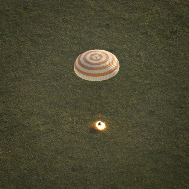 Pesawat antariksa Soyuz TMA-15M mendarat dengan membawa awak Stasiun Antariksa Internasional (ISS) Terry Virts asal Amerika Serikat, Anton Shkaplerov asal Rusia, dan Samantha Cristoforetti asal Italia di dekat kota Zhezkazgan, Kazakhstan, Kamis (11/6). Tiga astronot mendarat dengan selamat di padang rumput Kazakhstan Kamis kemarin, mengakhiri misi mereka selama 199 hari setelah menjalani “bulan bonus” di Stasiun Antariksa Internasional.