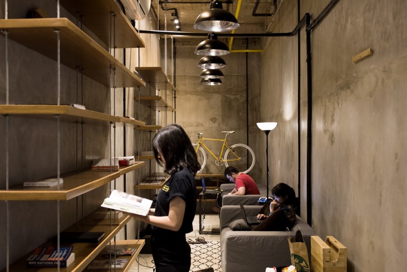 Pekerja membaca buku di ruang perpustakaan Co-Working Space Conclave di Jakarta, Selasa (16/6). Conclave merupakan projek creative co-working space yang bertujuan menjadi wadah atau tempat kerja untuk bertukar pikiran, belajar sekaligus kantor bersama bagi para startup, pekerja lepas, copywriter, publisher, designer serta pelaku industri kreatif di Indonesia.