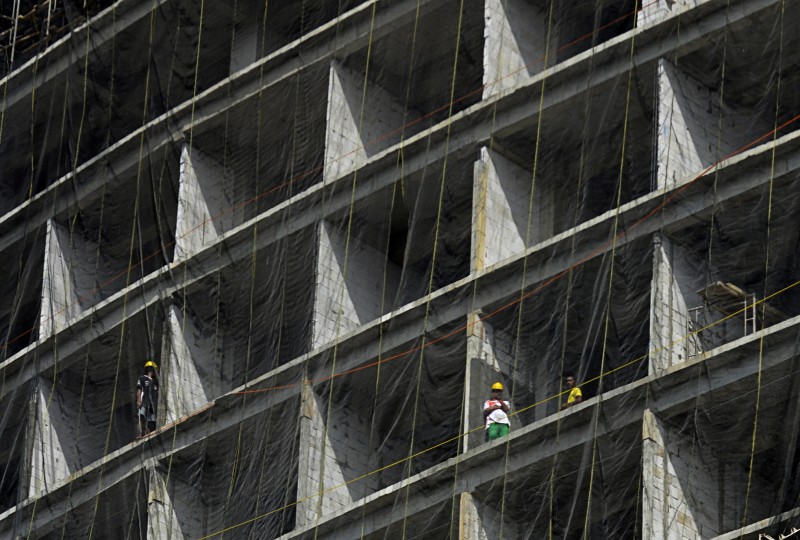 Pekerja menyelesaikan pengerjaan bangunan gedung bertingkat di jalan Mappanyukki, Makassar, Sulawesi Selatan, Kamis, (25/6). Pemerintah merencanakan percepatan pembangunan di Kawasan Timur Indonesia (KTI) sebagai bagian Rencana Pembangunan Jangka Menengah Nasional (RPJMN) 2015-2019.