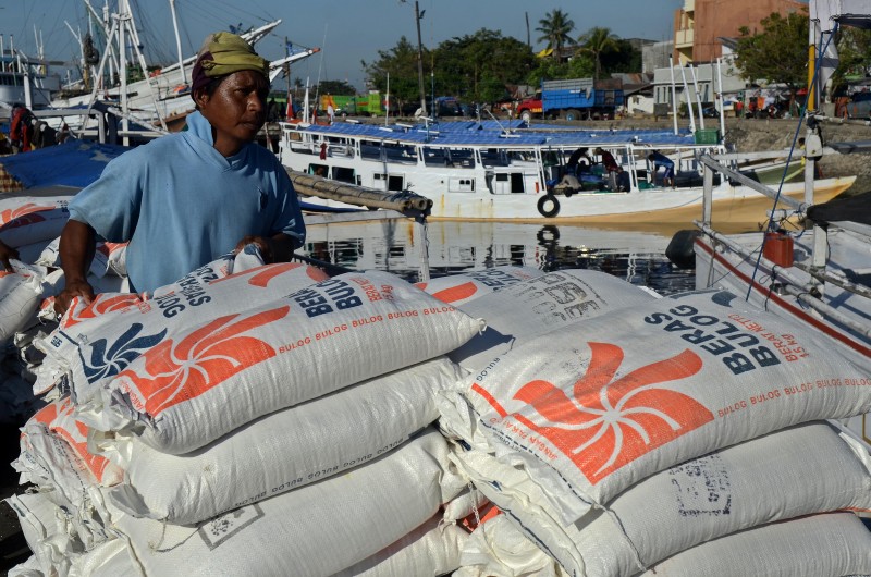 Pekerja memindahkan beras untuk masyarakat miskin (raskin) ke atas kapal di Pelabuhan Paotere, Makassar, Sulawesi Selatan, Jumat (26/6). Untuk memenuhi kebutuhan bulan Ramadan dan Idulfitri 1436 H, Badan Urusan Logistik (Bulog) menyalurkan raskin untuk masyarakat di kepulauan terluar Kabupaten Pangkajenne dengan total penerima raskin sebanyak 1.643 rumah tangga.