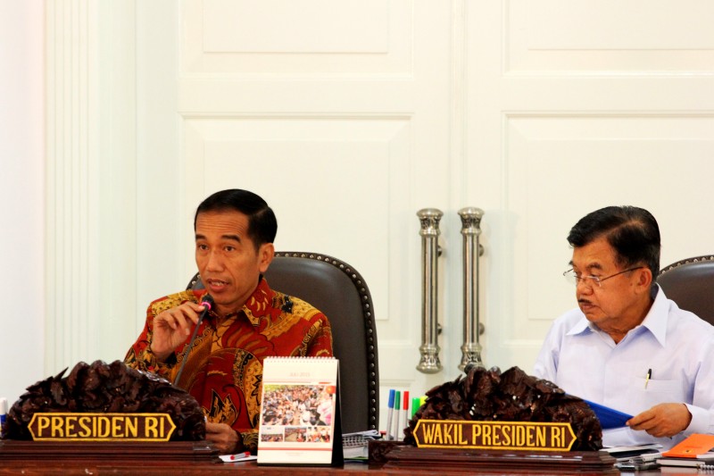 Presiden Joko Widodo Bersama Wakil Presiden RI Jusuf Kalla Pimpin Rapat Terbatas Mengenai Penanganan Bencana Erupsi Gunung Sinabung Di Kantor Presiden, 2 Juli 2015. FOTO : VIBIZMEDIA.COM/RULLY