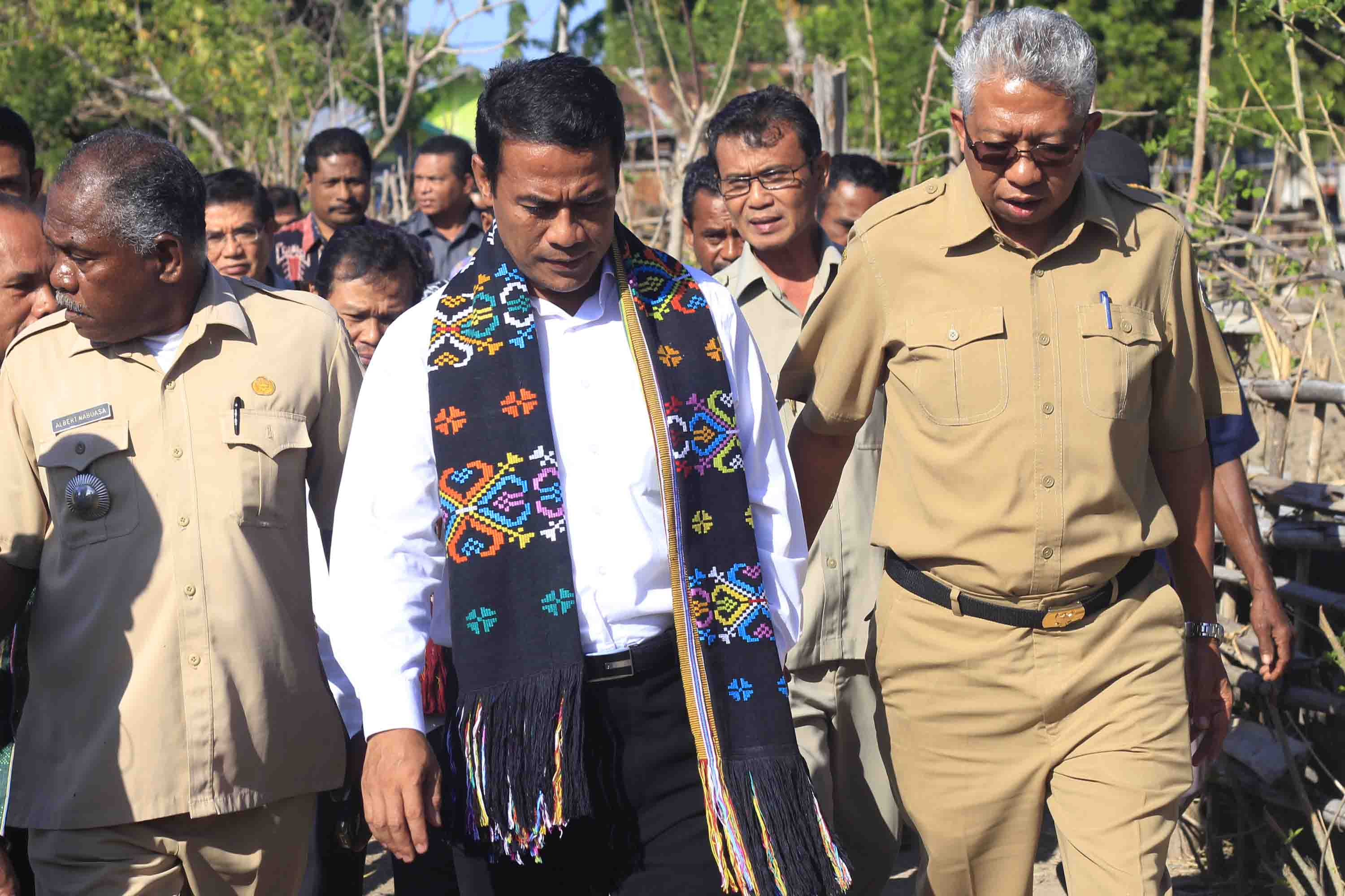 (Berita Daerah – Amanuban Selatan) Menteri Pertanian Amran Sulaiman (tengah) didampingi oleh Bupati Tumur Tengah Selatan (TTS) Paul Mella (kanan) meninjau daerah rawan pangan di desa Oebelo, Amanuban Selatan NTT, Kamis (2/7). Dalam kunjungan kerjanya Mentan memberikan bantuan berupa 40 unit pompa air, 1000 galian dangkal, benih jagung satu ton, benih jagung, benih sayur, serta memberikan bantuan buku rekening kepada sejumlah kelompok tani di daerah tersebut.