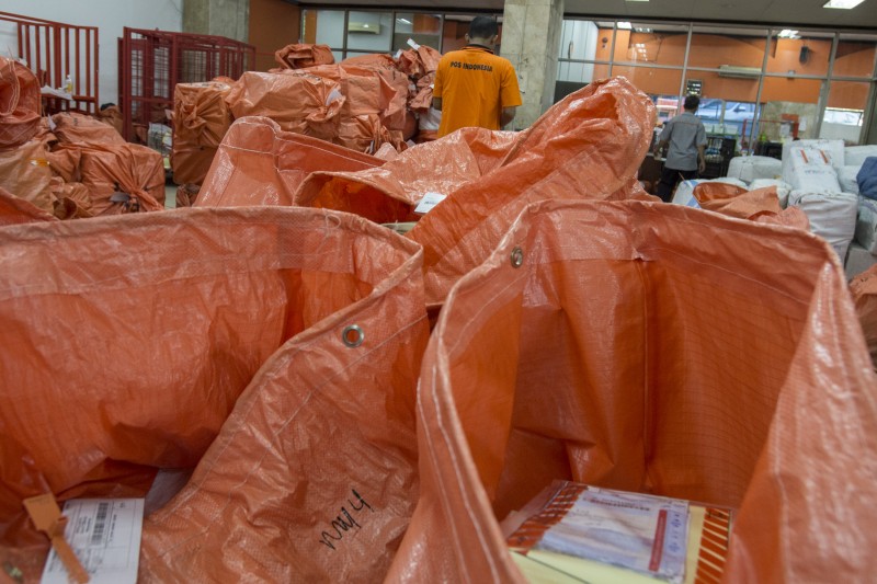 Photo GalleryNational Photos Pengiriman Paket Pos Meningkat 20% By Maruli Sinambela - Jul 6, 2015 0 737 Facebook Twitter WhatsApp Telegram Pekerja mengemas sejumlah paket pos di Kantor Pos Besar, Jakarta Pusat, Senin (6/7). Pengiriman paket pos menjelang Lebaran di kantor pos tersebut meningkat 20 persen atau mencapai 4000 paket setiap hari. (RL/VM-ANTARA FOTO/Rosa Panggabean)