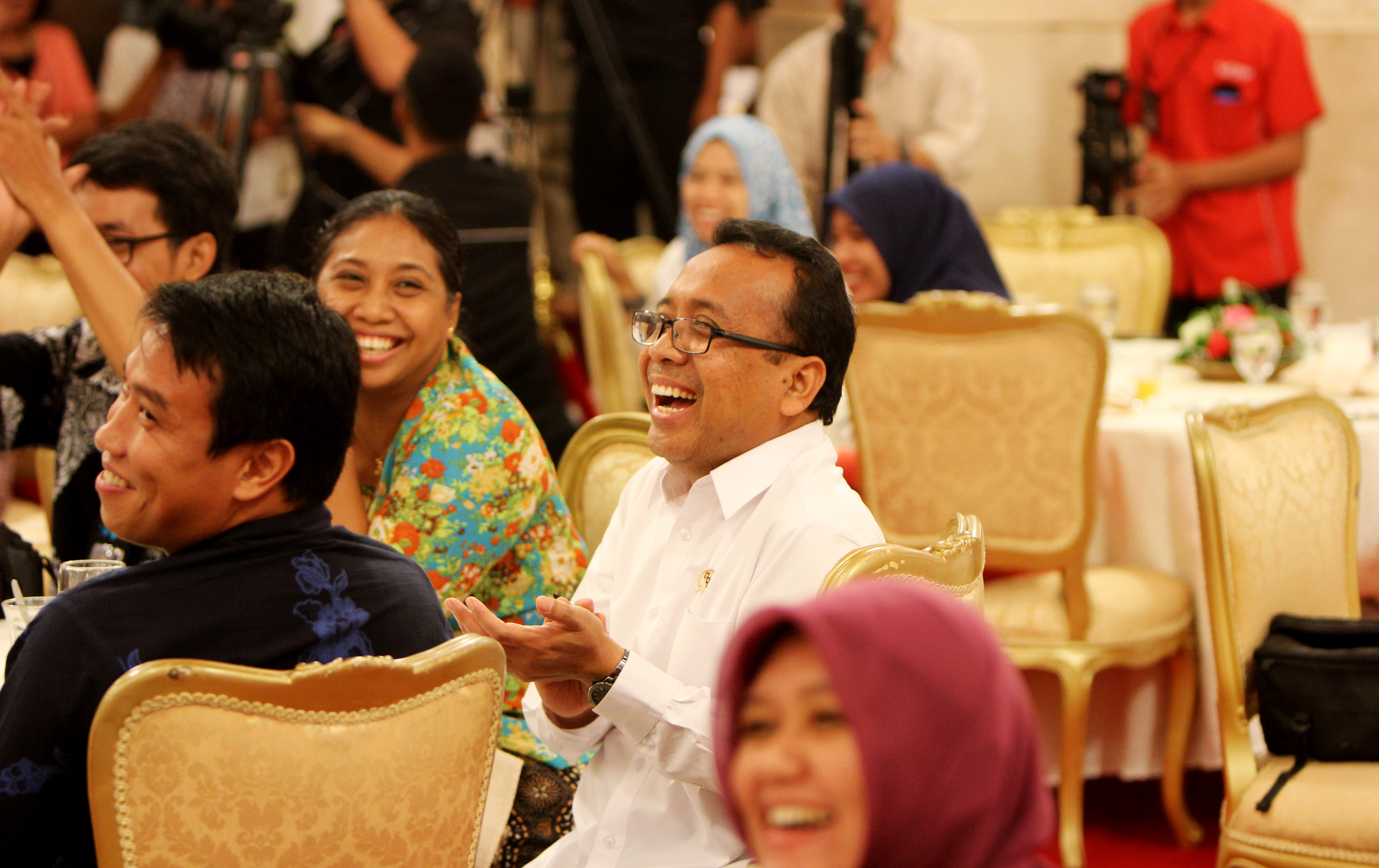Keceriaan Presiden Joko Widodo Saat Berbuka Puasa Bersama Wartawan Di Istana Merdeka, 6 Juli 2015. FOTO : VIBIZMEDIA.COM/RULLY