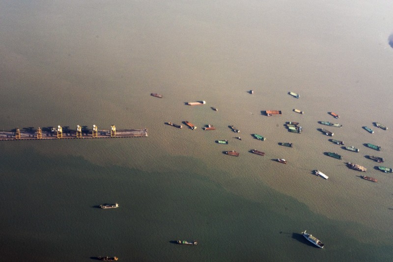 Foto udara antrean kapal memasuki pelabuhan peti kemas di Jakarta, Minggu (19/7). Badan Pusat Statistik mencatat kinerja impor Indonesia pada Juni 2015 mengalami kenaikan sebesar 11,63 persen menjadi 12,96 miliar dolar AS jika dibandingkan dengan Mei yang tercatat sebesar 11,61 miliar dolar.