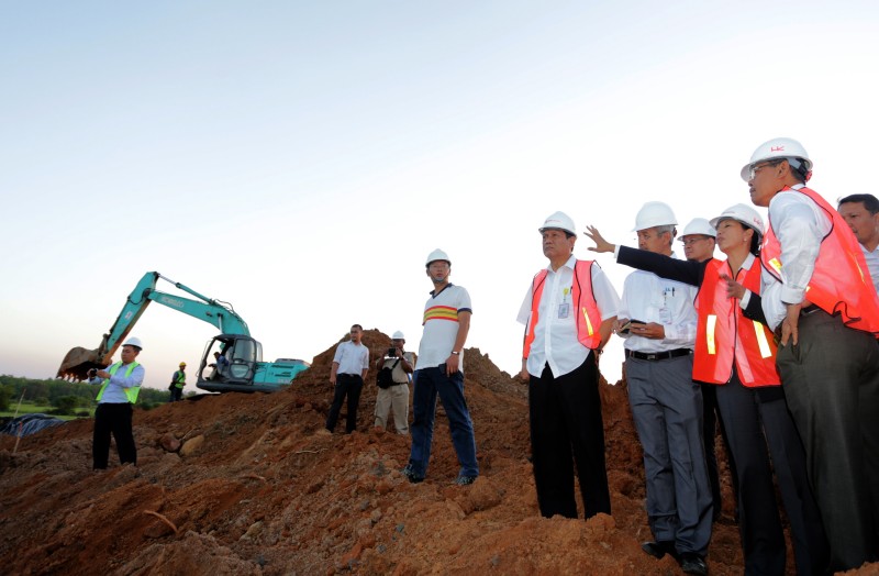 Menteri BUMN RI Rini M Soemarno (dua dari kanan) didampingi Direktur Hutama Karya I Gusti Ngurah Putra (kanan) beserta rombongan meninjau pembangunan jalan tol Palembang � Indralaya (Palindra) di Desa Ibul Kecamatan Pemulutan Kab Ogan Ilir (OI), Sumsel, Rabu (29/30). Menteri BUMN ingin memastikan langsung proyek pembangunan infrastruktur di Sumatera selatan berjalan sesuai target yang telah ditetapkan.