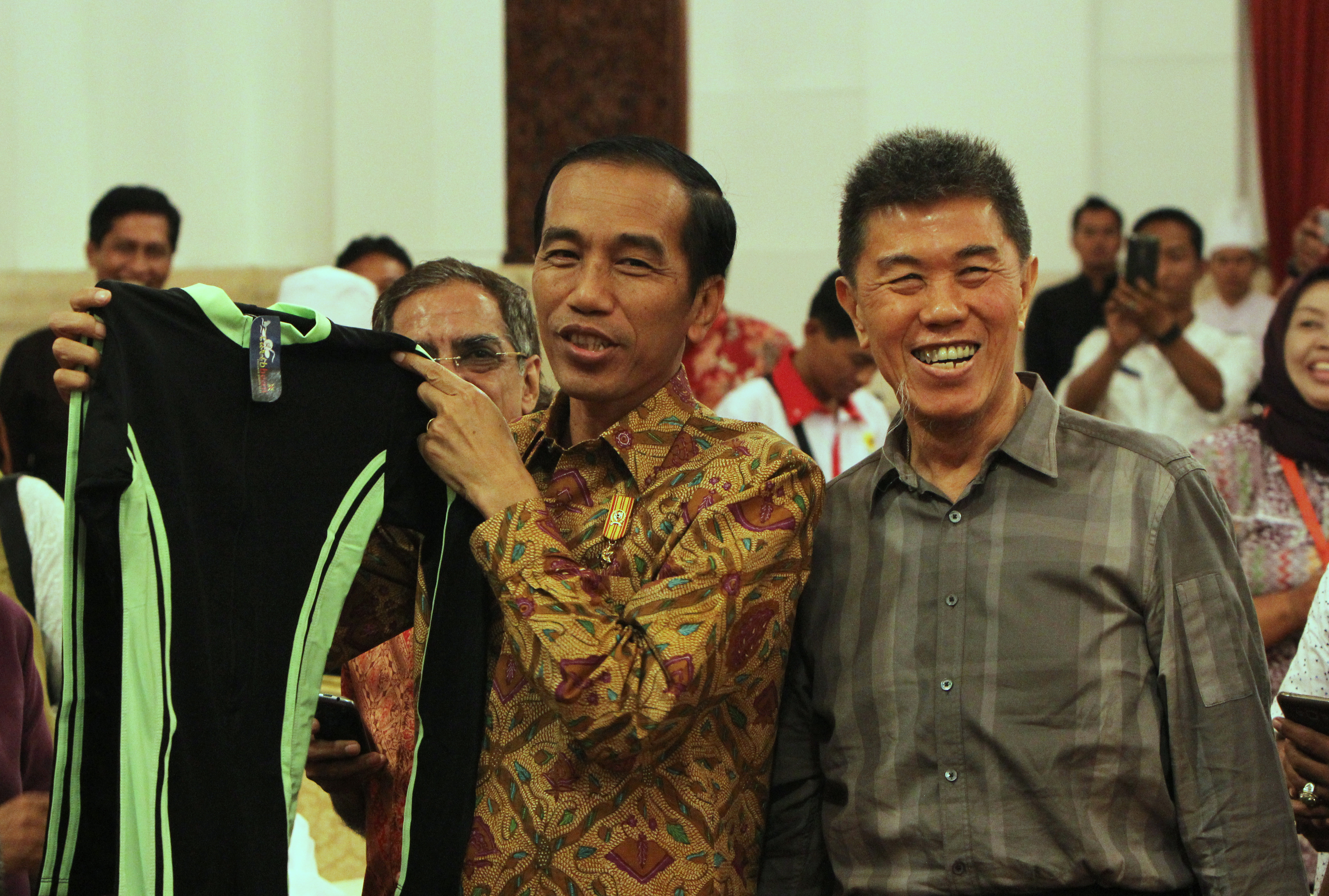 Presiden Menerima Pakaian Renang Dari Pedagang Pakaian Saat Makan Siang Bersama Di Istana Negara. FOTO : VIBIZMEDIA.COM/RULLY