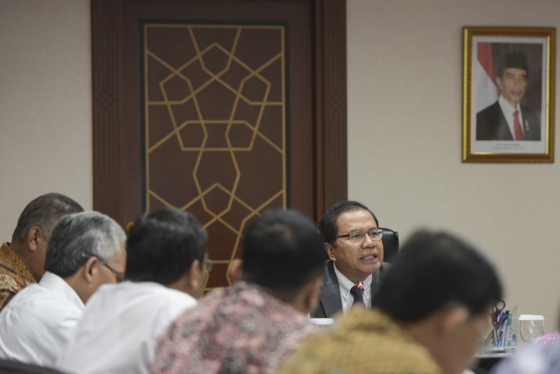Menko bidang Maritim dan Sumber Daya Rizal Ramli memimpin rapat koordinasi sektor energi di kantor Kementerian Koordinator Bidang Kemaritiman, Jakarta, Senin (7/9). Rapat tersebut membahas tiga agenda yaitu pembangunan dan revitalisasi kilang minyak, pengolahan dan pemurnian mineral, dan rencana pembangunan pembangkit listrik 35.000 MW.