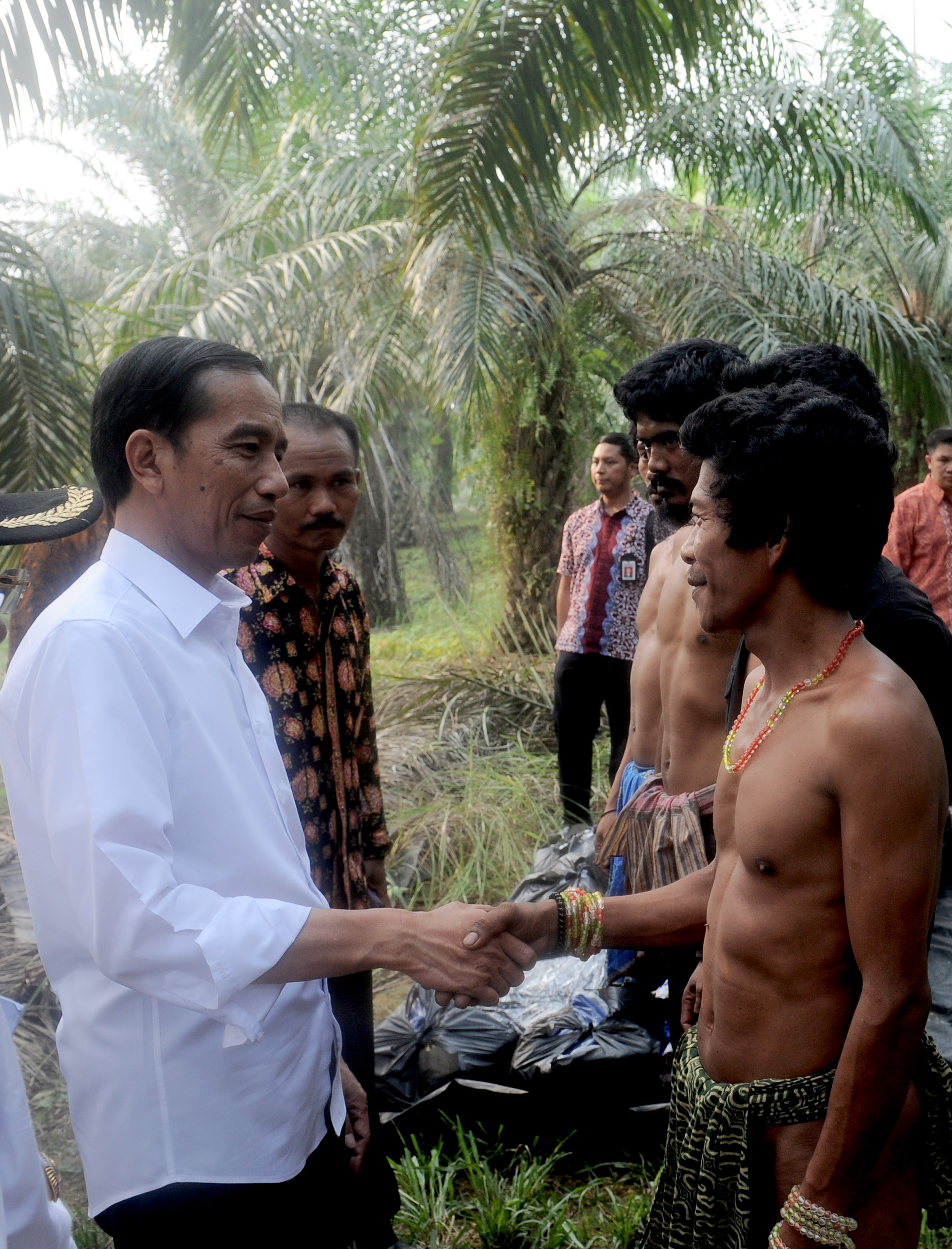 Presiden Joko Widodo Dialog dengan Warga Suku Anak Dalam di Desa Suban,Kecamatan Air Hitam, Kabupaten Sarolangun, Jambi. FOTO : SETPRES/RUSMAN