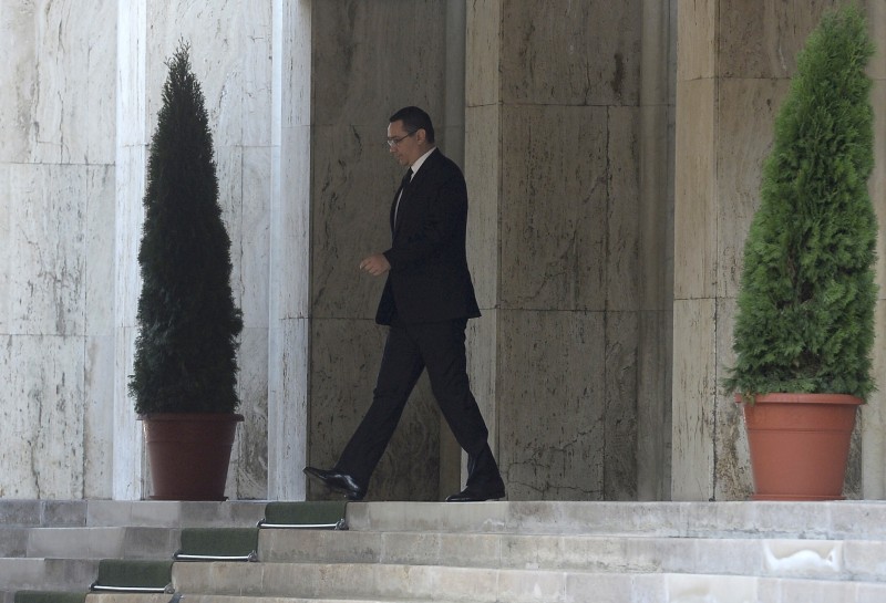 Perdana Menteri Rumania Victor Ponta meninggalkan kantor pemerintah setelah mengumumkan pengunduran dirinya di Bucharest, Rumania, Rabu (4/11). Ponta mengundurkan diri hari Rabu, dengan sangat mengejutkan setelah beberapa jam protes dari masyarakat menuntut pengunduran diri kabinet saat korban tewas kebakaran klub di Bucharest mencapai 32 orang, menurut partai berkuasa sayap kirinya.
