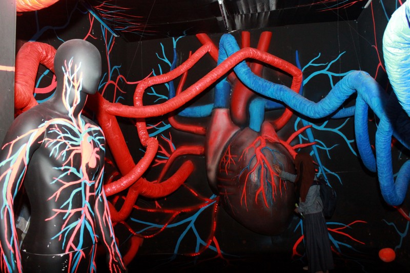 Pengunjung mengamati replika anatomi bagian tubuh manusia di wahana Adventure of Human Body, di Bekasi, Jawa Barat, Rabu (4/11). Wahana yang menyajikan replika anatomi tubuh manusia melalui pemanfaatan teknologi visual tersebut bertujuan sebagai sarana hiburan dan edukasi pengenalan anatomi tubuh sejak dini yang berlangsung 23 Oktober-31 Januari 2015.