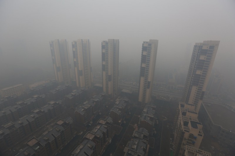 Gedung tempat tinggal terlihat tertutupi kabut asap di Shenyang, provinsi Liaoning, Minggu (8/11). Saat musim salju mulai datang, pencatatan PM2.5 adalah lebih dari 1000 mikrogram per kubik meter pada hari Minggu, menurut media lokal. Foto diambil tanggal 8 November 2015.