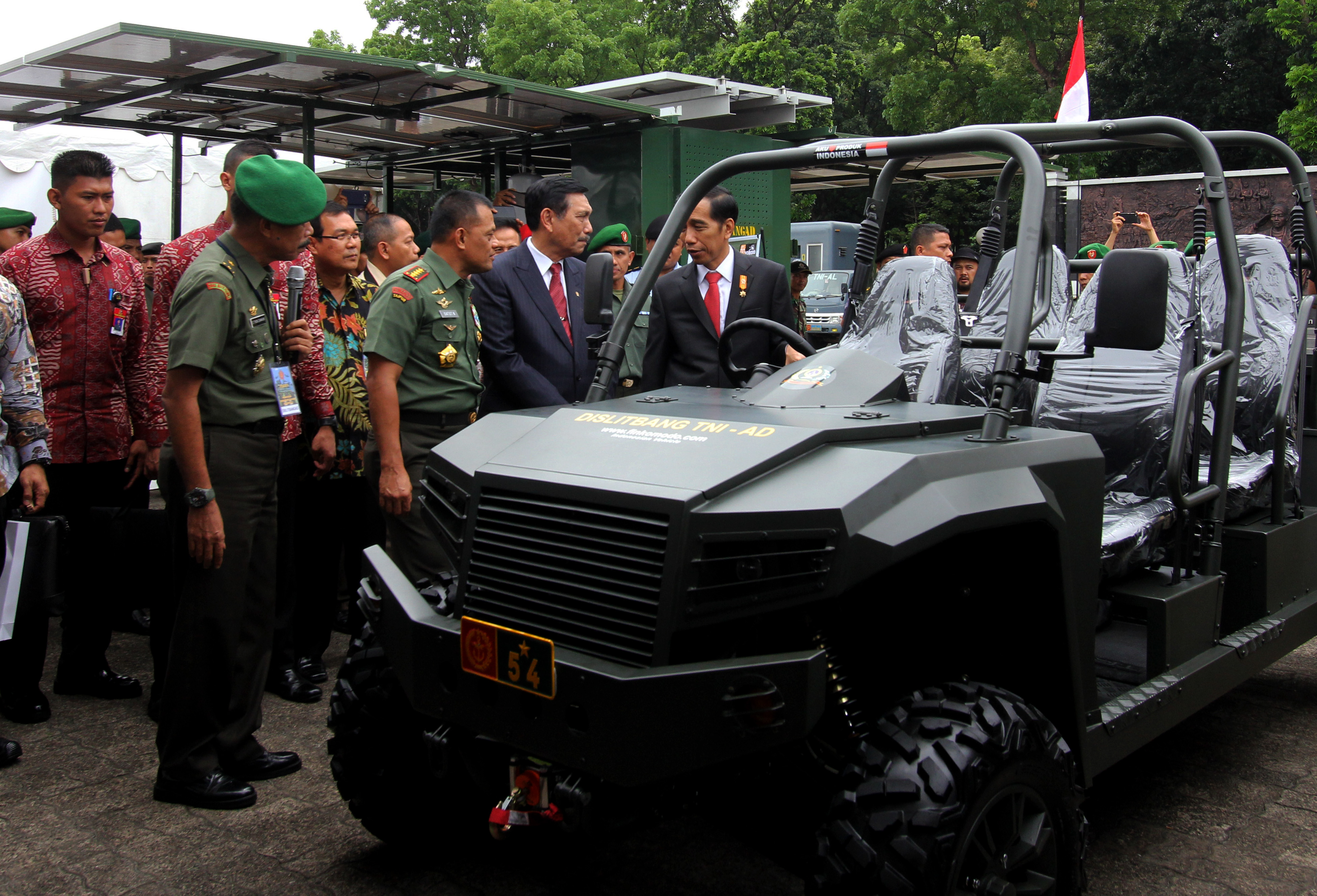 Presiden Joko Widodo Sedang Meninjau Komponen Tank Buatan Anak Indonesia di Pameran Alutsista Mabes TNI, Cilangkap. FOTO : VIBIZMEDIA.COM/RULLY