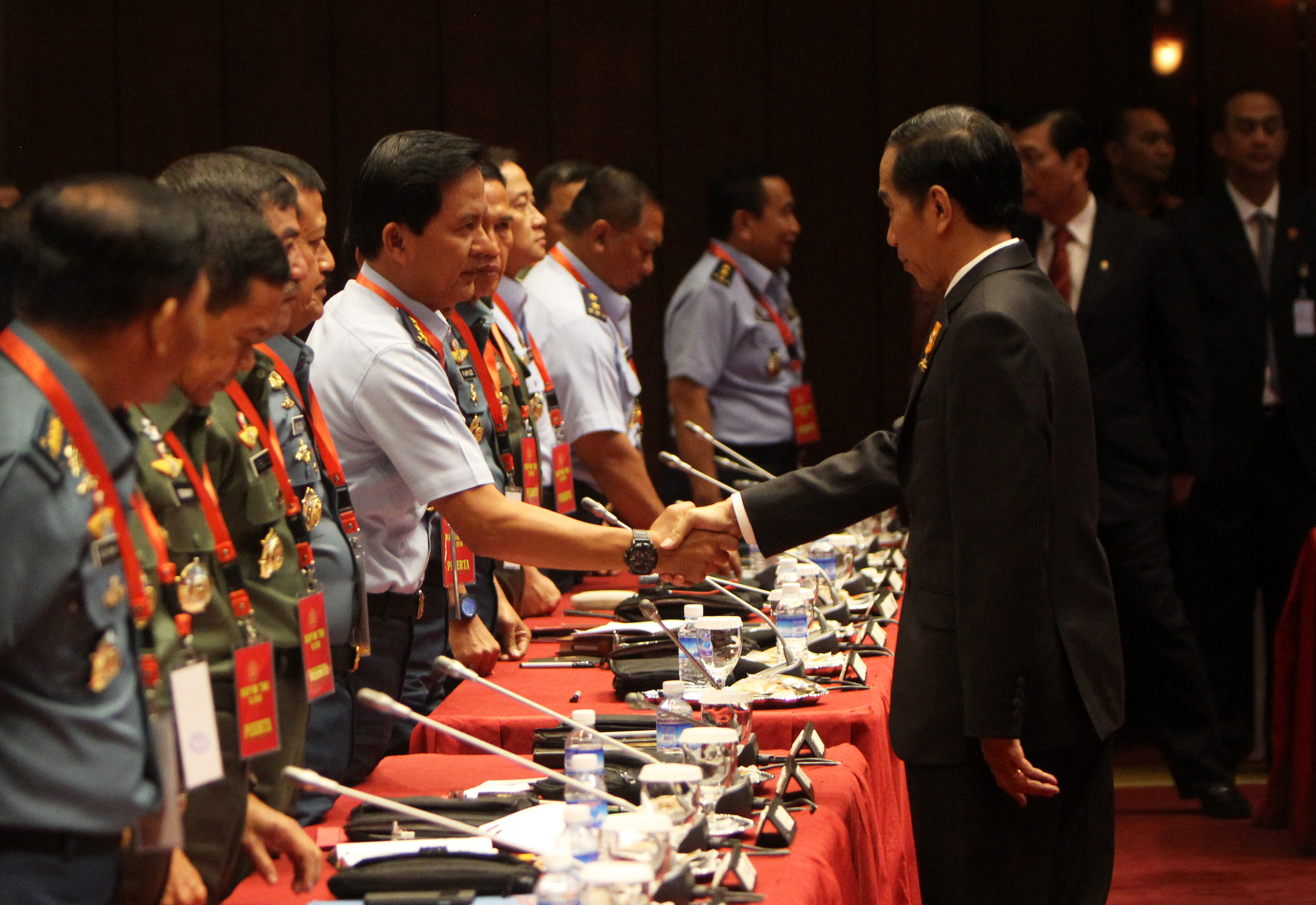 Presiden Joko Widodo Membuka Rapat Pimpinan TNI Membahas Anggaran 2016 di Mabes TNI, Cilangkap. FOTO : VIBIZMEDIA.COM/RULLY