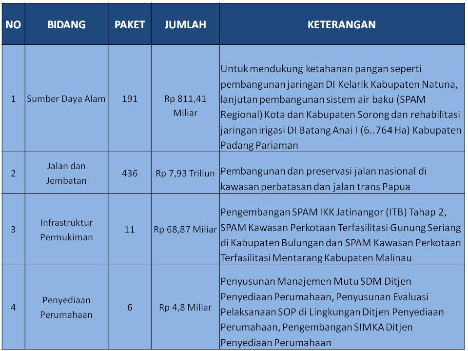 Basuki sampaikan bahwa di masing-masing lokasi ditandatangani sebanyak 10 paket yang terdiri dari paket kontraktual baik pekerjaan fisik maupun jasa konsultasi di bidang sumber daya air, infrastruktur permukiman, jalan, jembatan dan penyediaan perumahaan, ungkapnya Rabu (6/12).