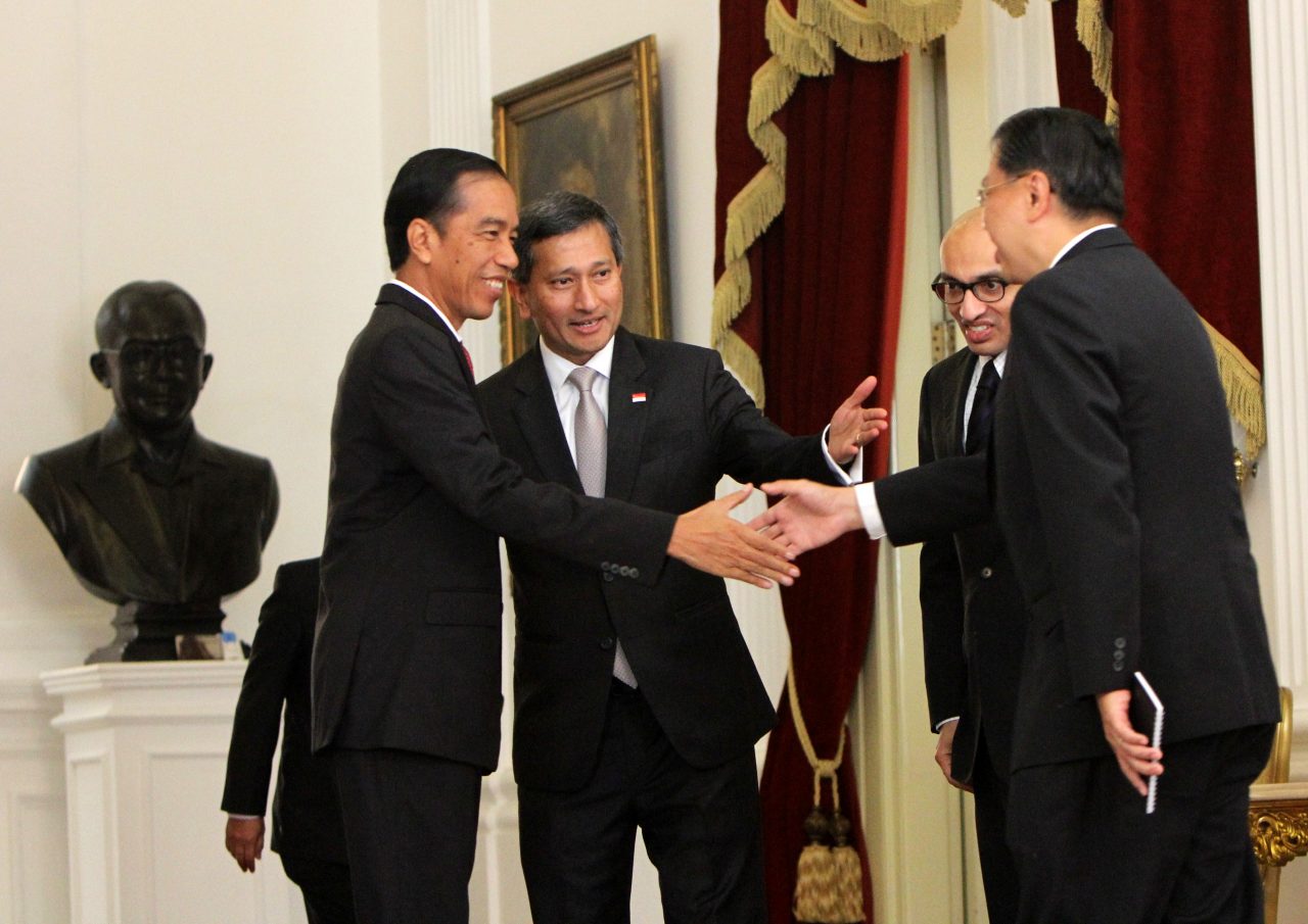 Presiden Joko Widodo menerima kunjungan kehormatan Menteri Luar Negeri Singapura Vivian Balakrishnan di Istana Merdeka, 13 Januari 2016. FOTO : VIBIZMEDIA.COM/RULLY