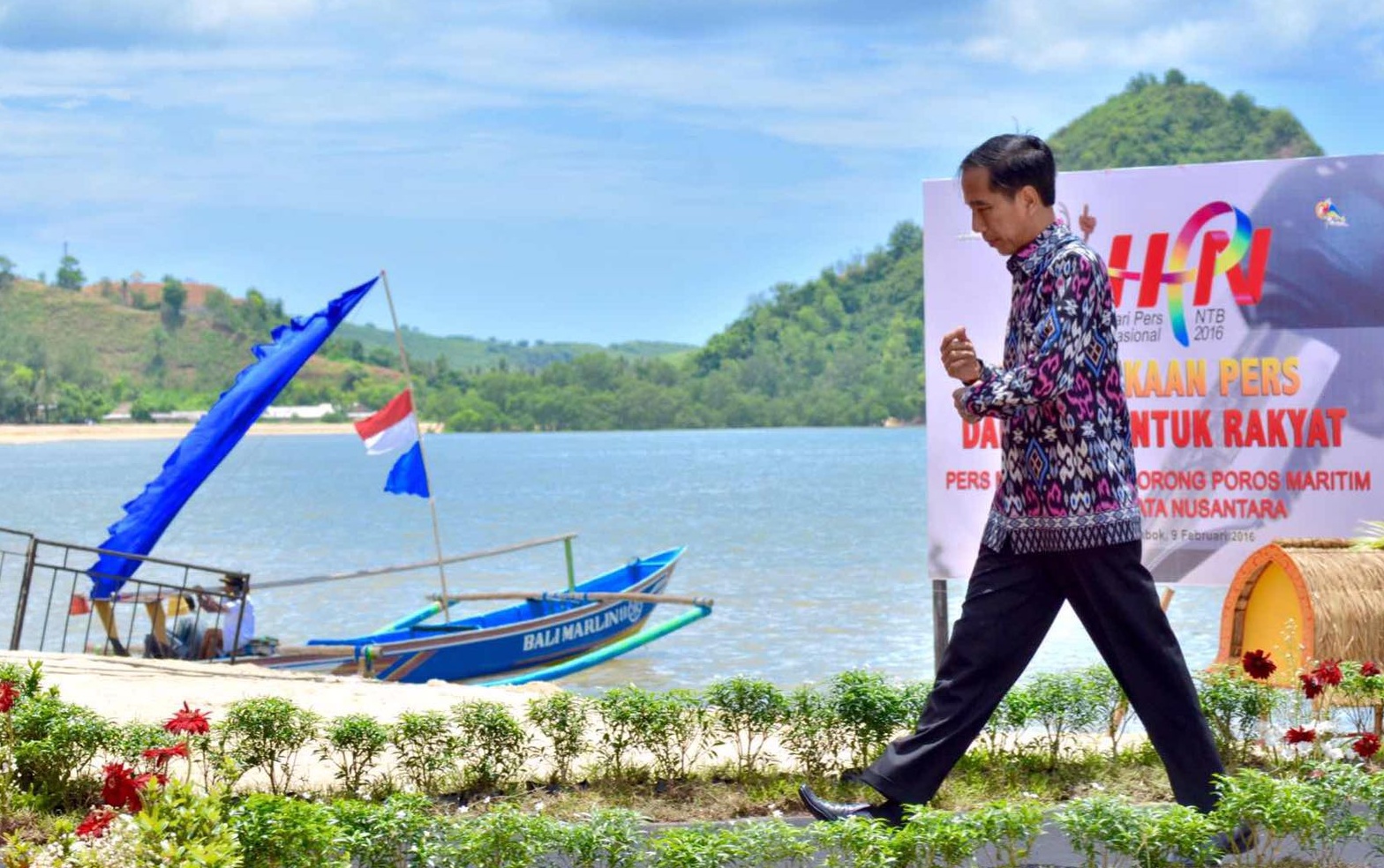 Presiden Joko Widodo Dalam Puncak Peringatan Hari Pers Nasional tahun 2016 di Pantai Mandalika, Kabupaten Lombok Tengah, Provinsi Nusa Tenggara Barat. FOTO : SETKAB