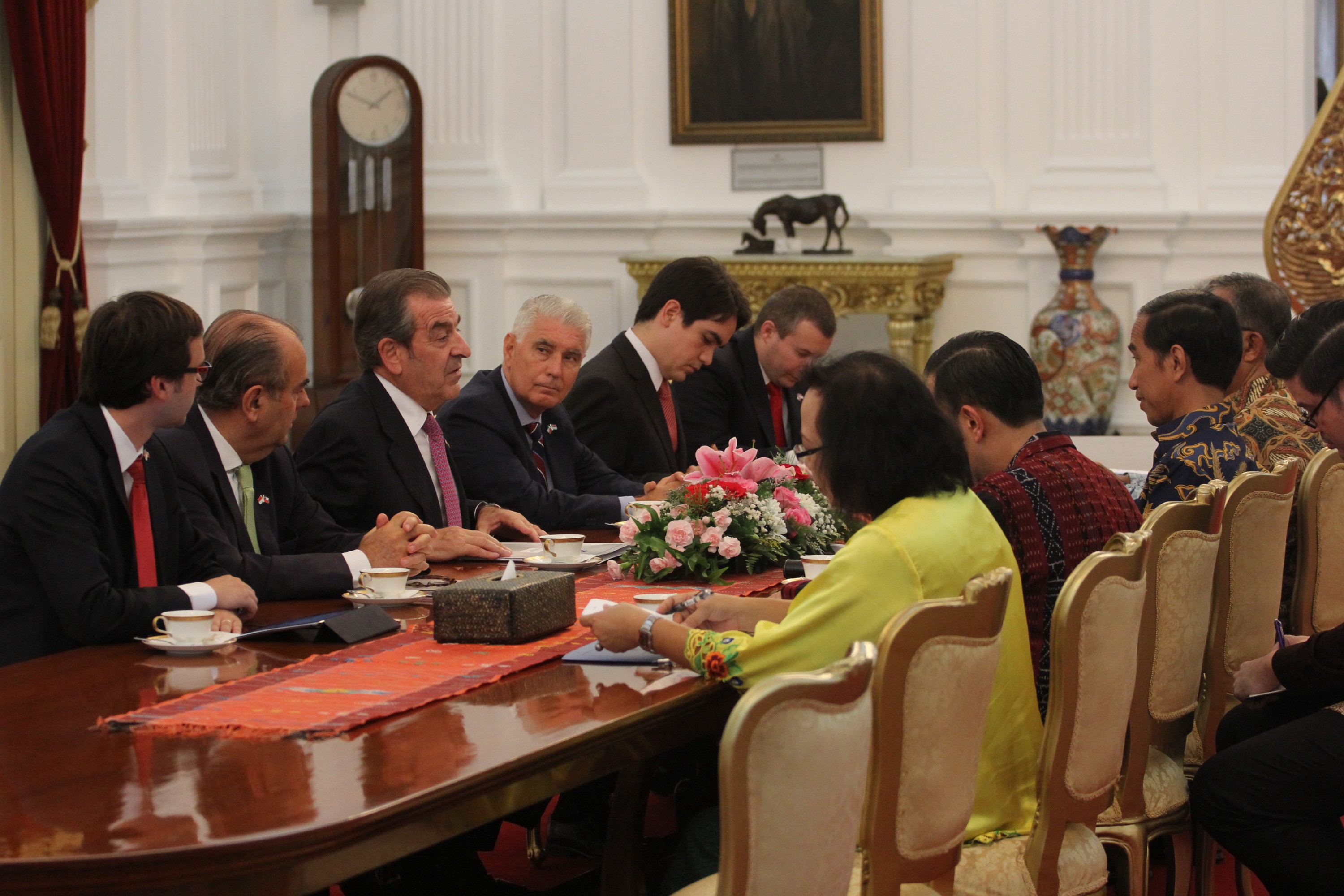 Presiden Joko Widodo Menerima Kunjungan Kehormatan Mantan Presiden Chile dan Duta Besar LBBP Republik Chile Untuk Kawasan Asia Pasifik di Istana Merdeka. FOTO : VIBIZMEDIA.COM/RULLY