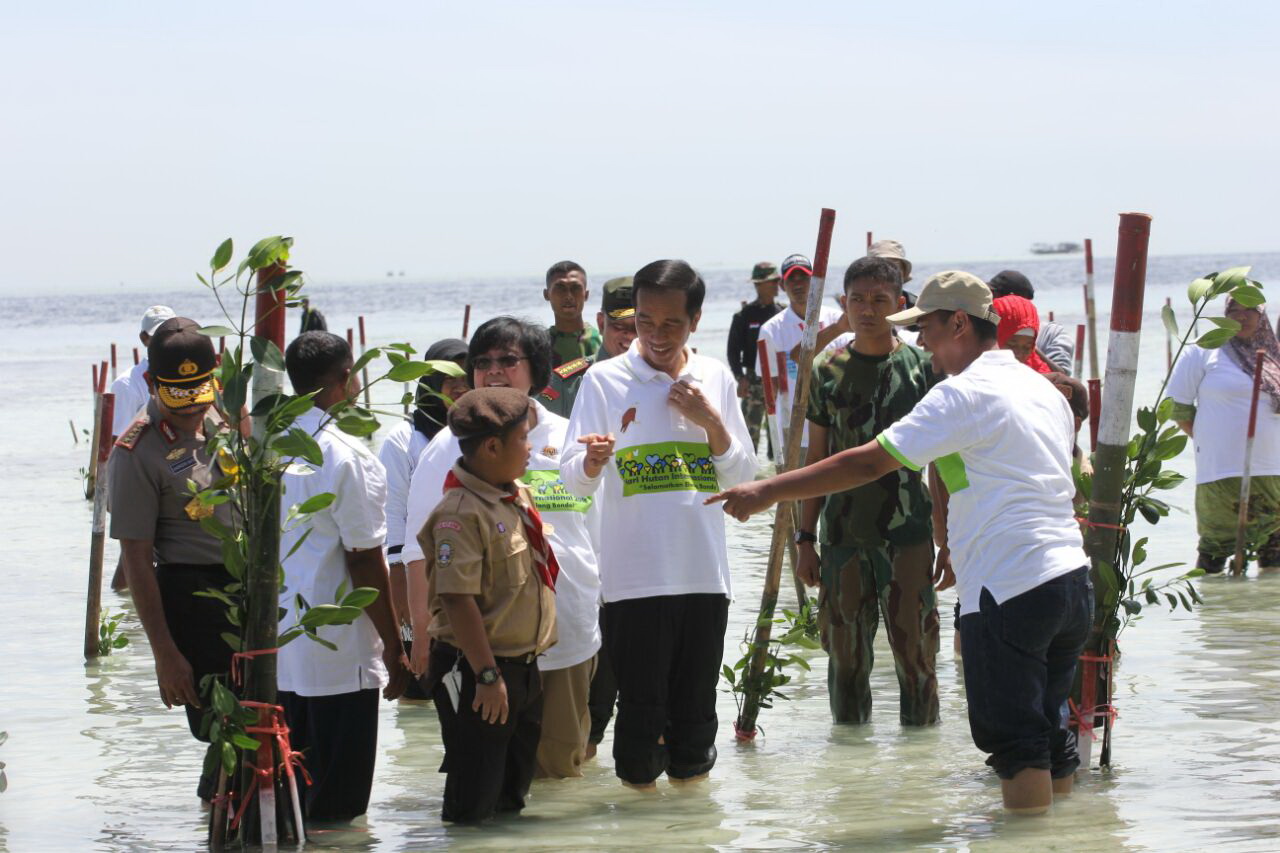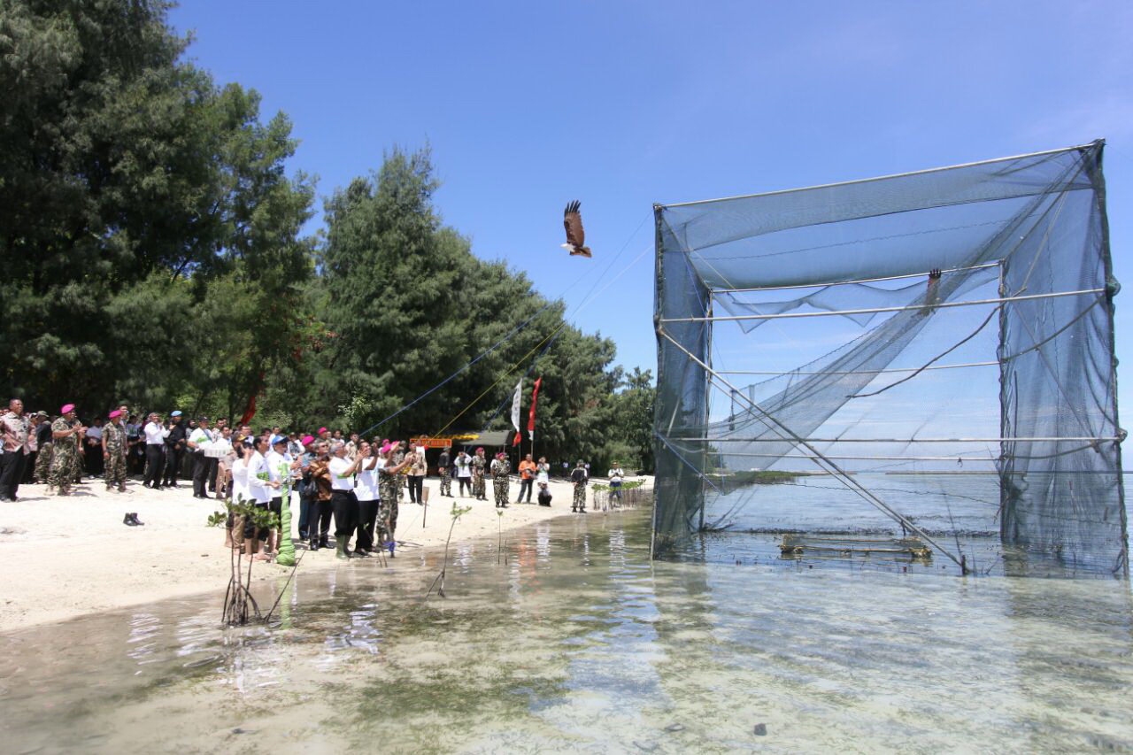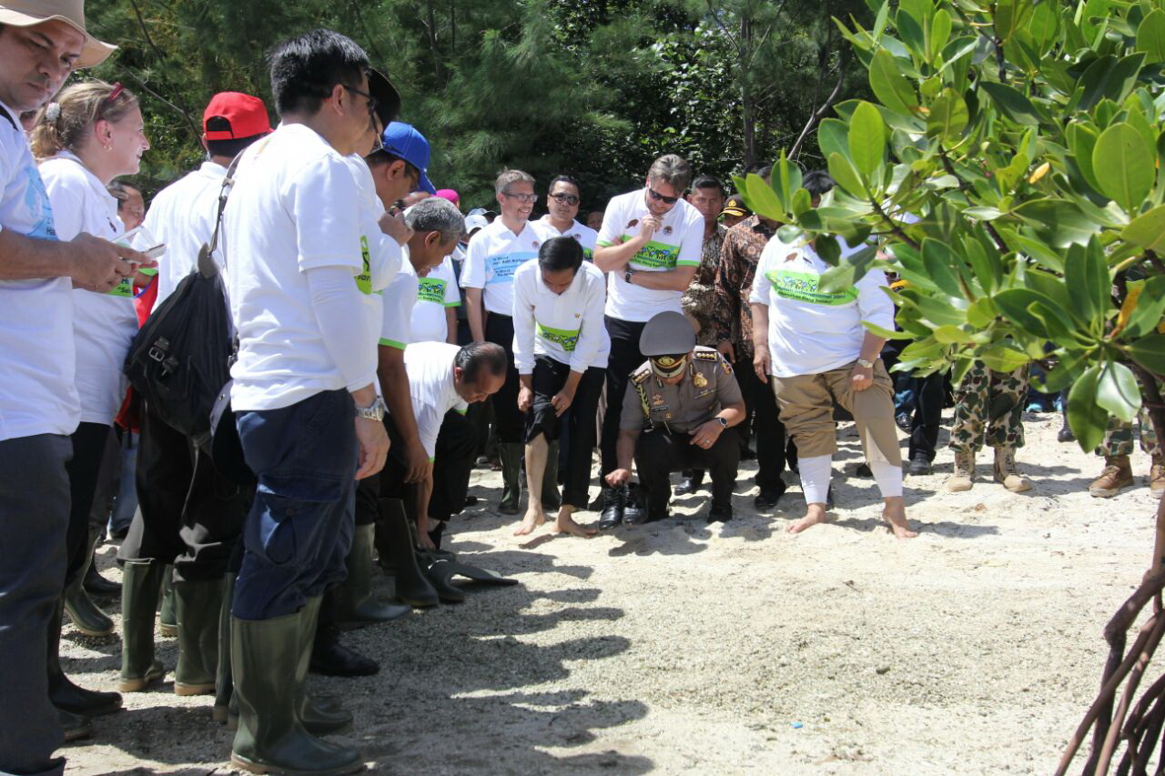 Presiden Joko Widodo dan Menteri Kehutanan dan Lingkungan Hidup Melepas 4 Penyu di Pulau Karya, Kepulauan Seribu. FOTO : VIBIZMEDIA.COM/RULLY