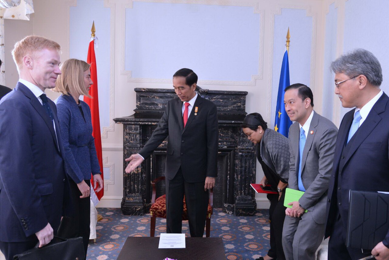 Home Photo Gallery National Photos Comprehensive Economic Partnership Agreement Indonesia dengan Uni Eropa Pertemuan Bilateral Indonesia dengan Uni Eropa di Brussel. FOTO : SETPRES/LAILY Photo GalleryNational Photos Comprehensive Economic Partnership Agreement Indonesia dengan Uni Eropa By Maruli Sinambela - Apr 21, 2016 0 1610 Facebook Twitter WhatsApp Telegram 1 of 1 Presiden Joko Widodo Menerima Wakil Presiden Komisi Eropa, Federica Mogherini di Ruang Le Boudoir, Wiltcher's Steigenberger, Brussel. FOTO : SETPRES/LAILY RELATED ARTICLESMORE FROM AUTHOR Lensa Jakarta: Suasana Hangat dan Khidmat Peringatan HUT ke 74 Kemerdekaan RI Presiden Joko Widodo Beri Pengarahan 600 Direksi BUMN Peserta Pelatihan Eksekutif Executive Leadership Program Direksi BUMN Presiden Ikut Lomba dan Memotivasi Atlet Panahan Untuk Berprestasi Pantai Melasti, Lokasi Wisata Baru di Desa Ungasan Bali LEAVE A REPLY Cancel reply Please enter your comment! Please enter your name here You have entered an incorrect email address! Please enter your email address here Save my name, email, and website in this browser for the next time I comment. Δ