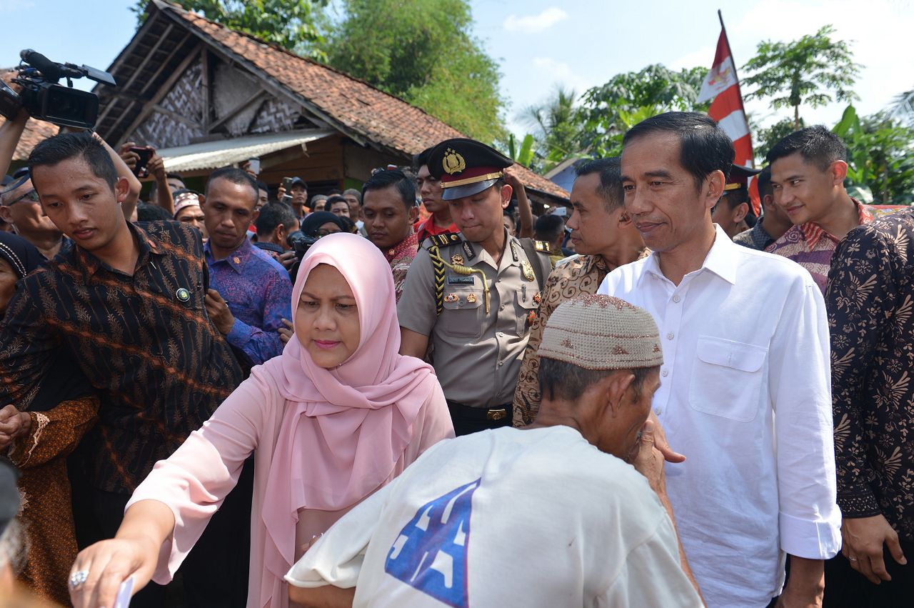 Presiden Joko Widodo membagikan paket sembako bagi warga Banten. FOTO : SETPRES