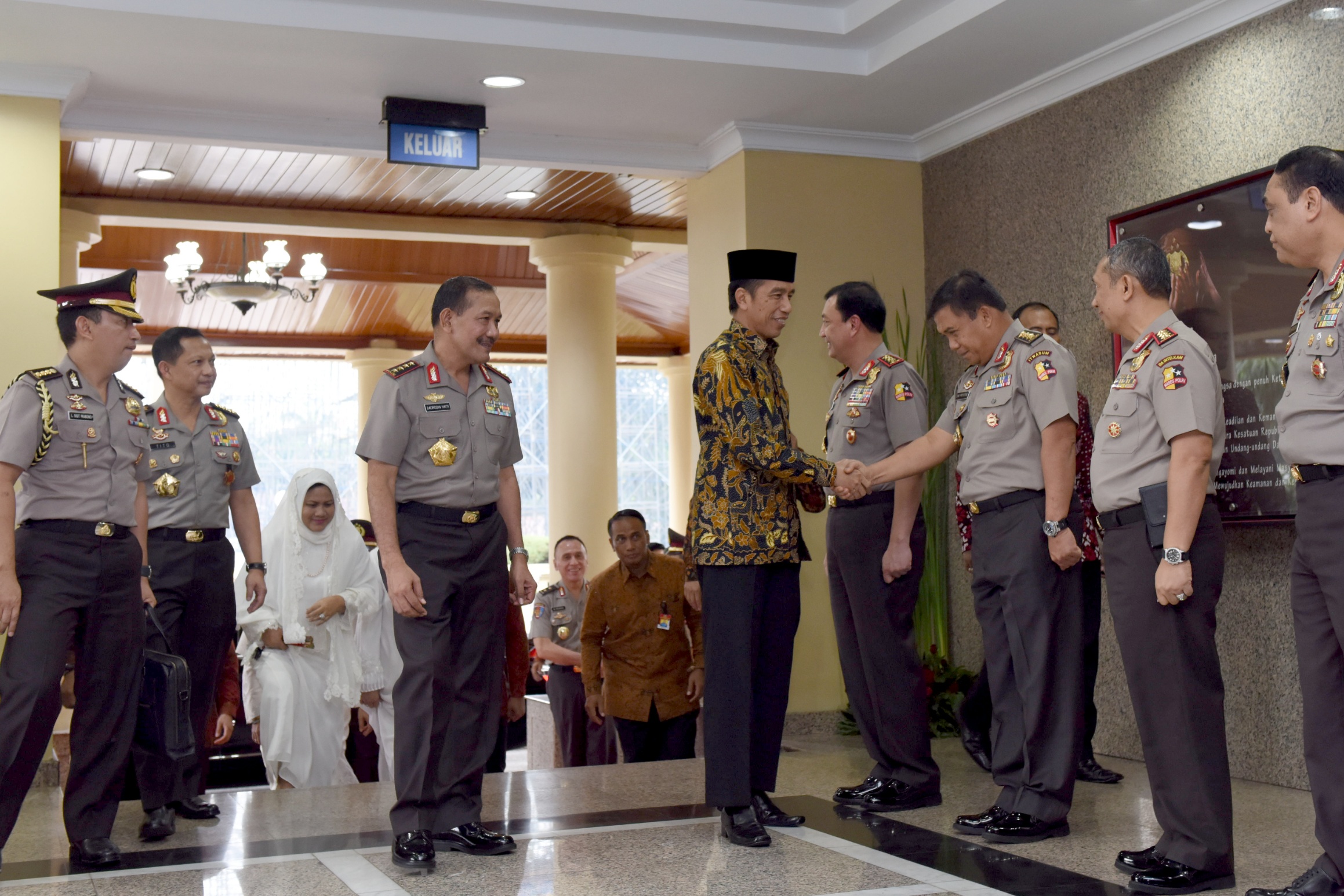 “Tidak ada lagi pungutan, tidak ada lagi makelar kasus, tidak ada lagi diskriminasi dalam penegakan hukum maupun dalam perlindungan masyarakat. Selain itu, sebagai Bhayangkara negeri, yang tidak kalah penting ialah kemauan Polri, keikhlasan Polri, untuk menekan ego sektoral dan memperkuat kerja sama antar lembaga seperti dengan KPK dan dengan kejaksaan. Kejahatan hanya bisa diberantas kalau kita bersatu,” ucap Presiden penuh semangat.