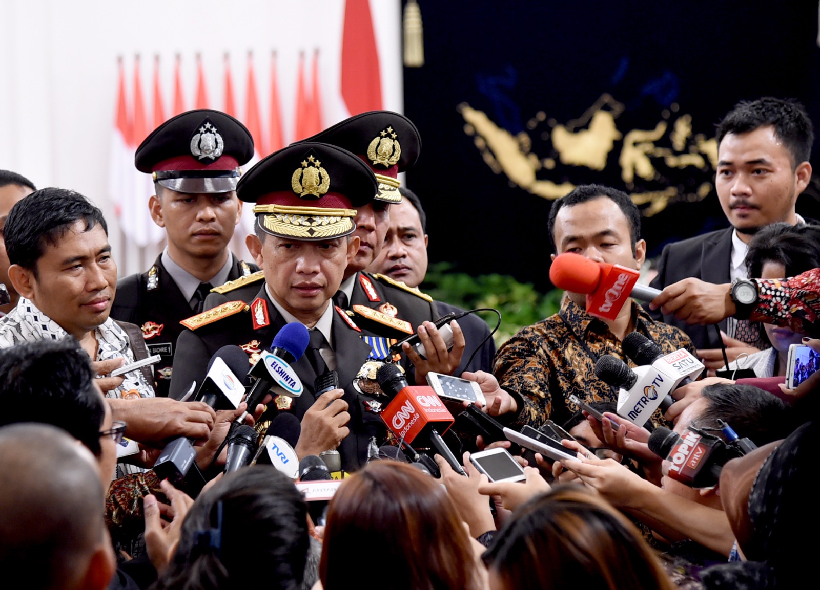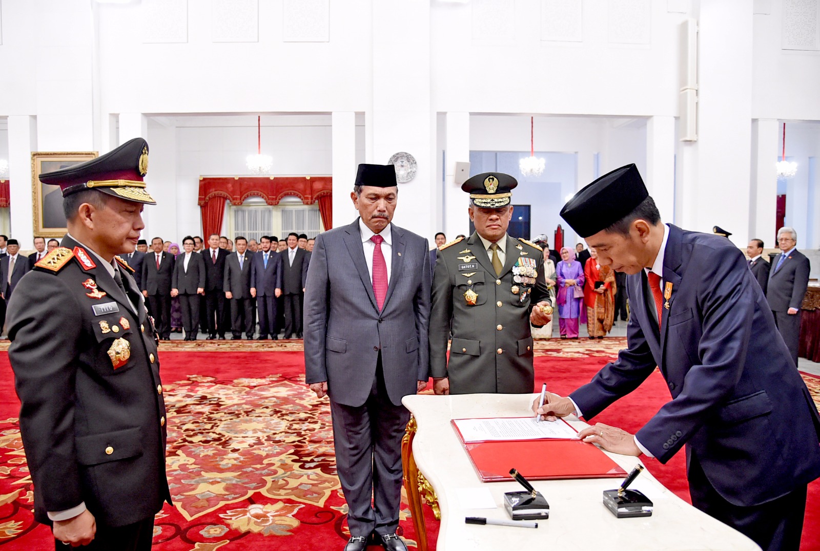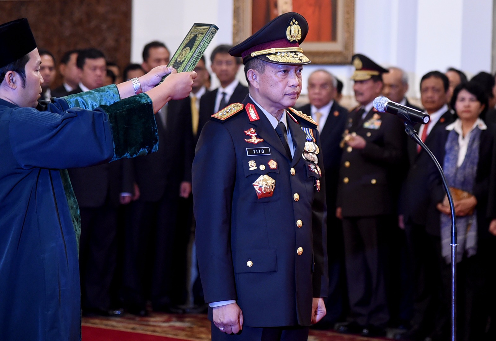 Home Berita Pelantikan Kapolri Tito Karnavian Pembacaan Sumpah Kapolri Baru Tito Karnavian. FOTO : SETPRES Berita Pelantikan Kapolri Tito Karnavian By Maruli Sinambela - Jul 13, 2016 0 4212 Facebook Twitter WhatsApp Telegram 1 of 4 Kapolri Baru Tito Karnavian memberikan keterangan pers rencana kerja kedepan Polri. FOTO : SETPRES Pelantikan Kapolri Baru Tito Karnavian di Istana Negara. FOTO : SETPRES Pembacaan Sumpah Pengangkatan Kapolri Baru Tito Karnavian. FOTO : SETPRES Presiden Joko Widodo melantik Kapolri Tito Karnavian di Istana Negara. FOTO : SETPRES RELATED ARTICLESMORE FROM AUTHOR Presiden Prabowo Tiba di Tanah Air Usai Lawatan Luar Negeri, Bawa Capaian Strategis Presiden MBZ Siap Tingkatkan Investasi di Indonesia, Hubungan Bilateral Masuki Fase Baru BRI Bukukan Laba Rp57,13 Triliun di 2025, Kredit dan UMKM Tumbuh Kuat BNPB Catat Karhutla, Banjir, dan Angin Kencang di Sejumlah Wilayah dalam 24 Jam Terakhir BNPB Salurkan Bantuan untuk Penyintas Banjir dan Longsor di Aceh Timur, 1.503 Huntara Rampung LEAVE A REPLY Cancel reply Please enter your comment! Please enter your name here You have entered an incorrect email address! Please enter your email address here Save my name, email, and website in this browser for the next time I comment. Δ