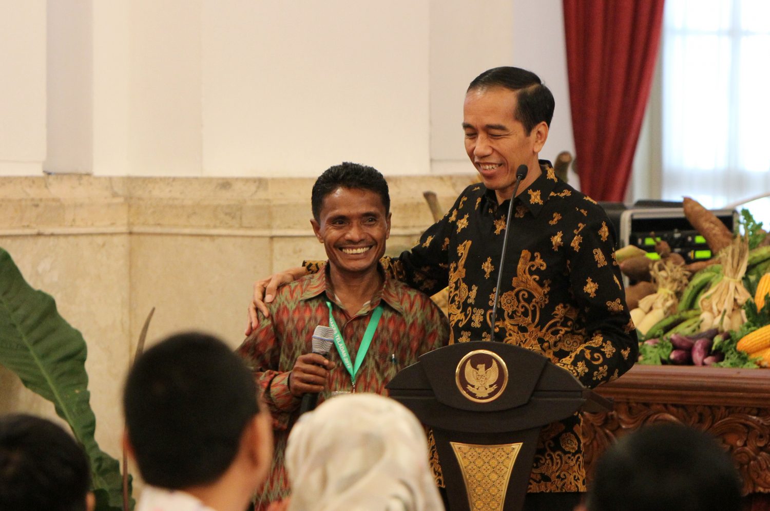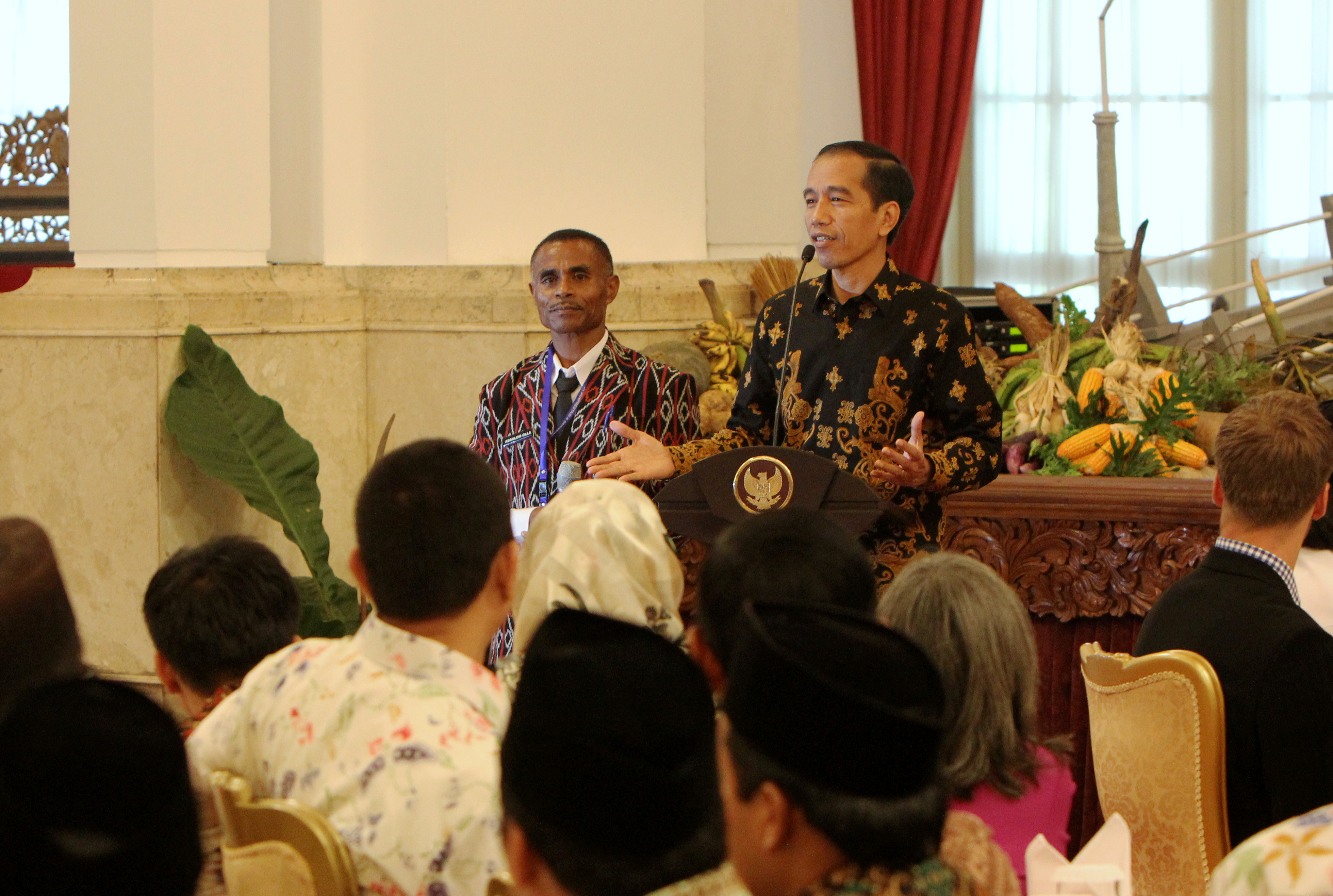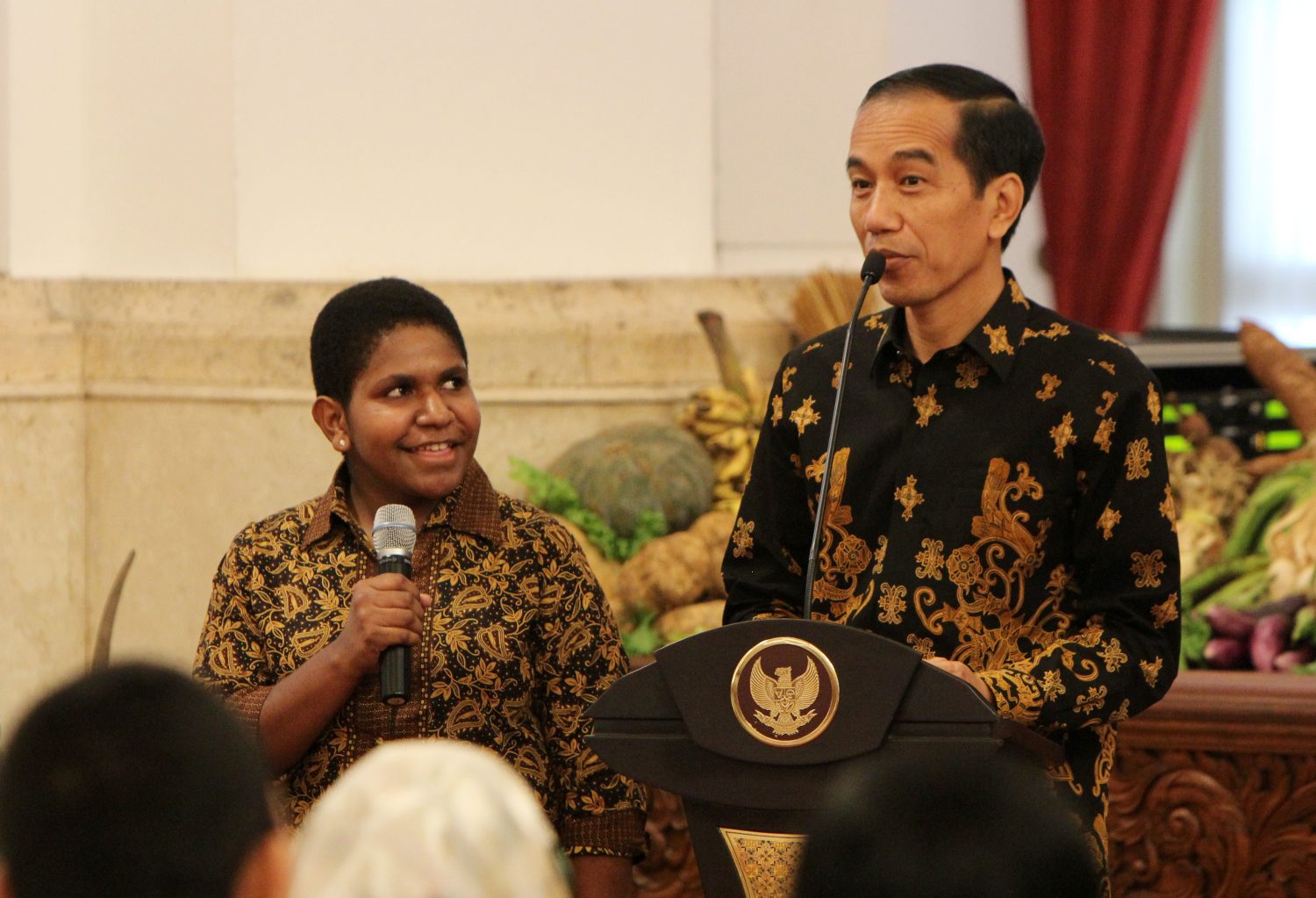 Presiden Joko Widodo bersama salah satu peserta teladan nasional juara matematika dari Nduga, Papua di Istana Negara. FOTO : VIBIZMEDIA.COM/RULLY