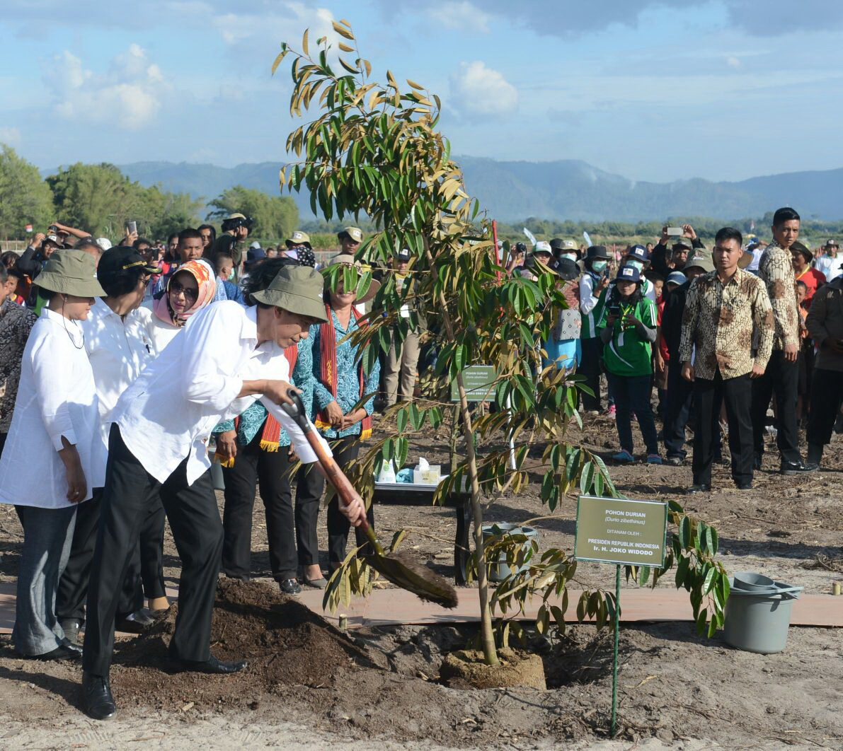 Presiden Joko Widodo bersama masyarakat menanam pohon di Kebun Raya Samosir, Kabupaten Samosir dalam program penanaman satu juta pohon di kawasan Danau Toba, 21 Agustus 2016. FOTO : SETPRES/KRIS